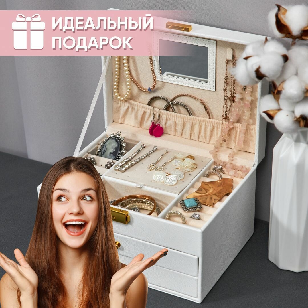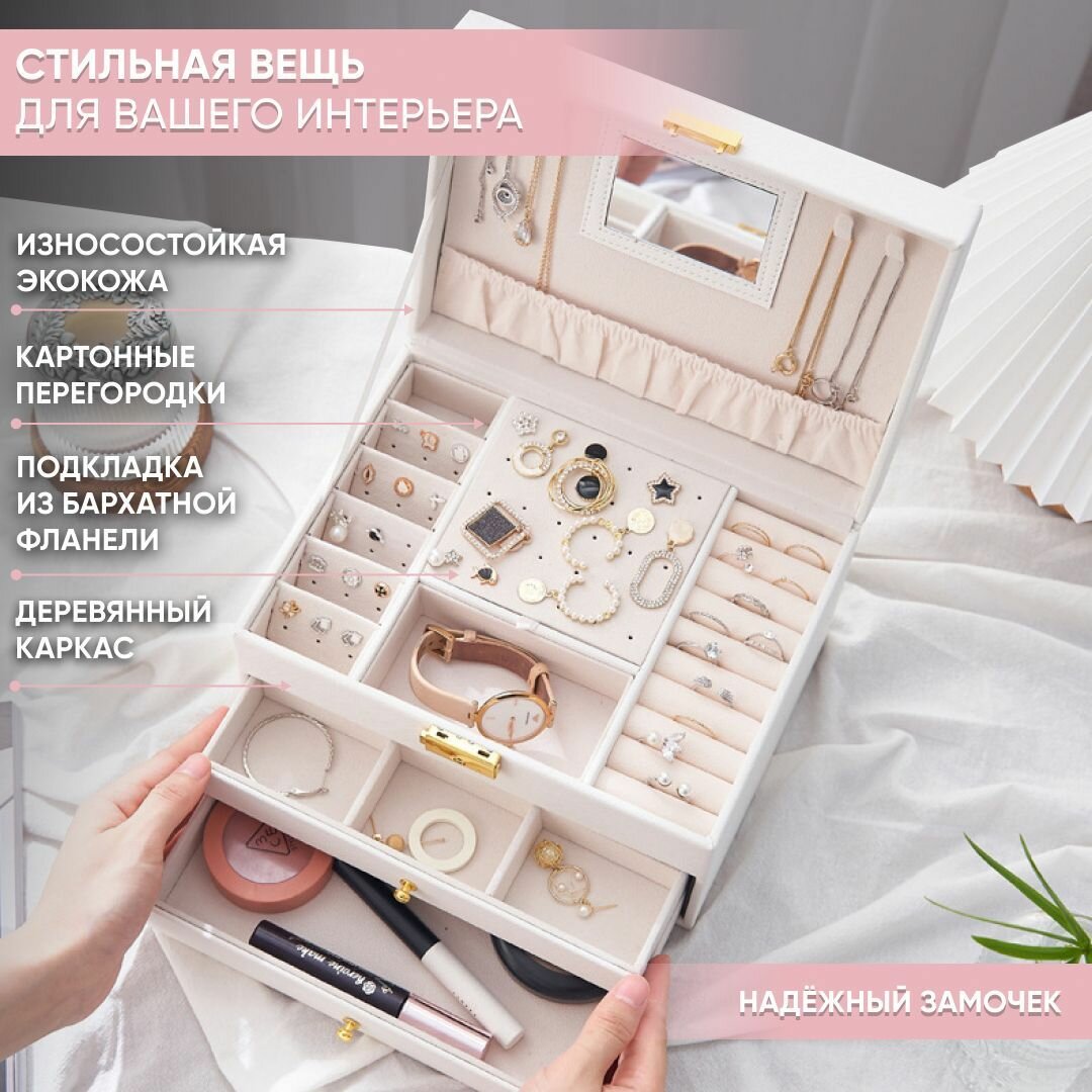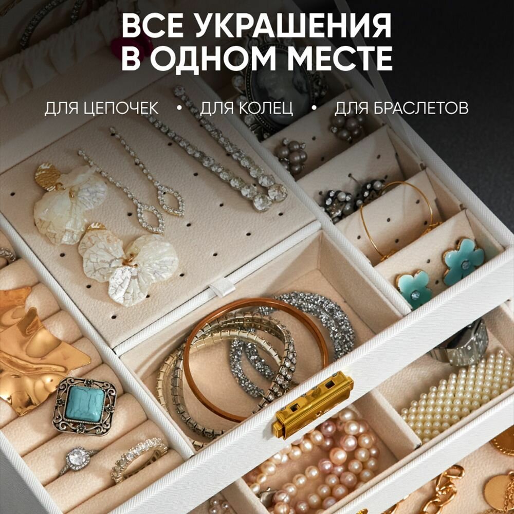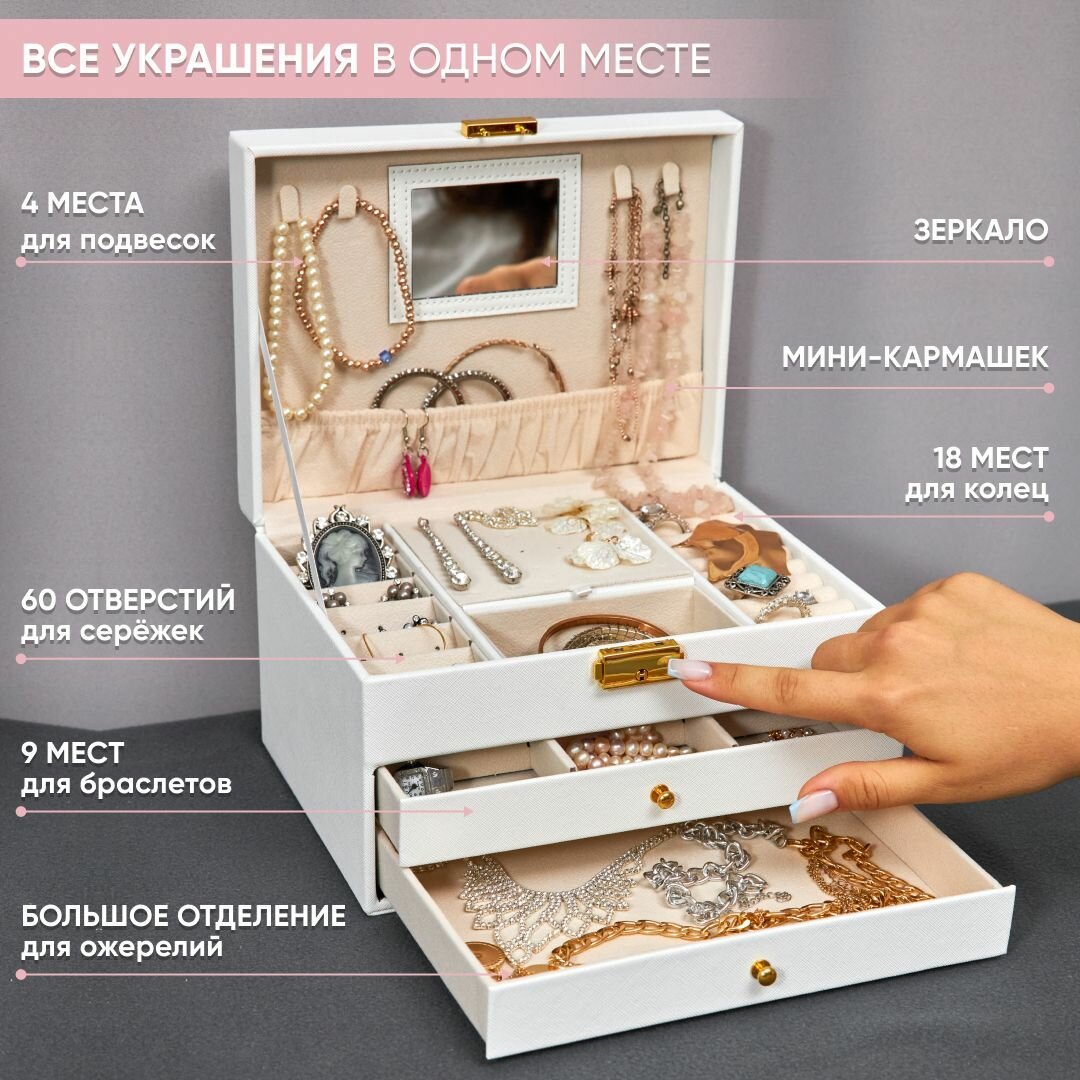 Шкатулка для украшений большая OQQI, органайзер для серег и колец интересное: