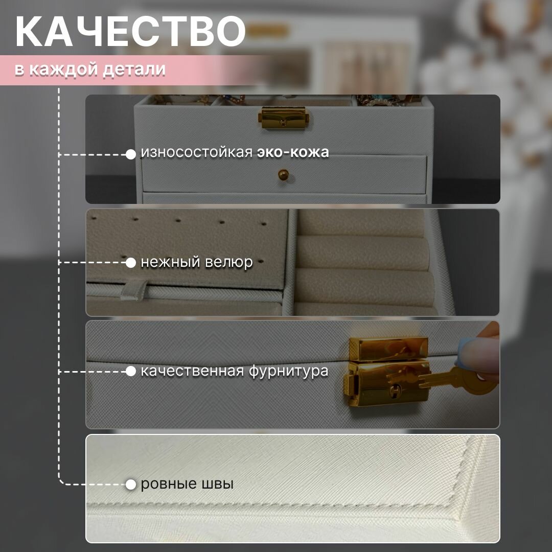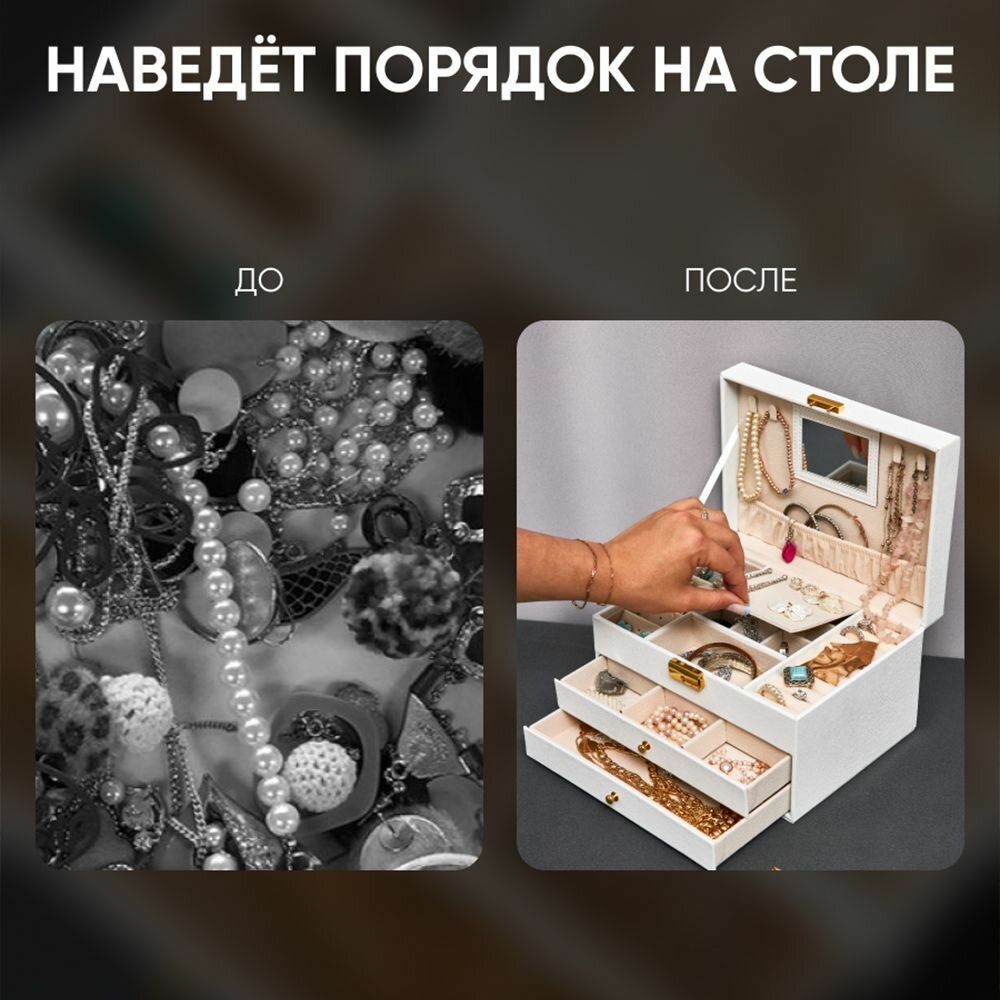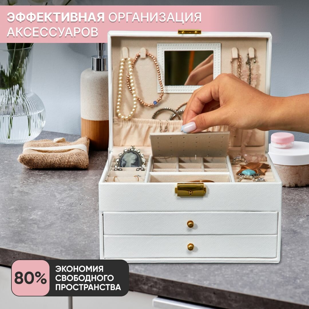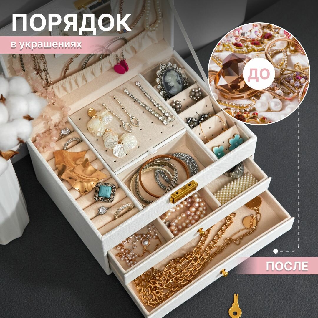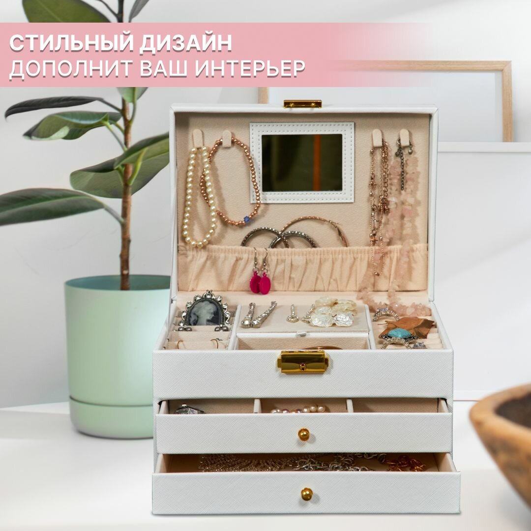 Шкатулка для украшений большая OQQI, органайзер для серег и колец интересное: