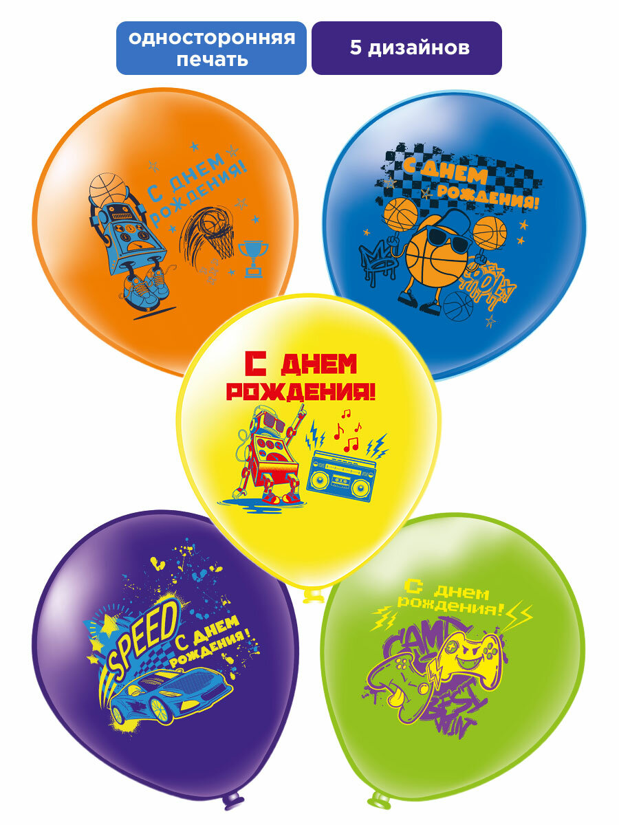 Купить Шарики воздушные для мальчика на праздник Роботы "С Днем Рождения!" 10 шт
