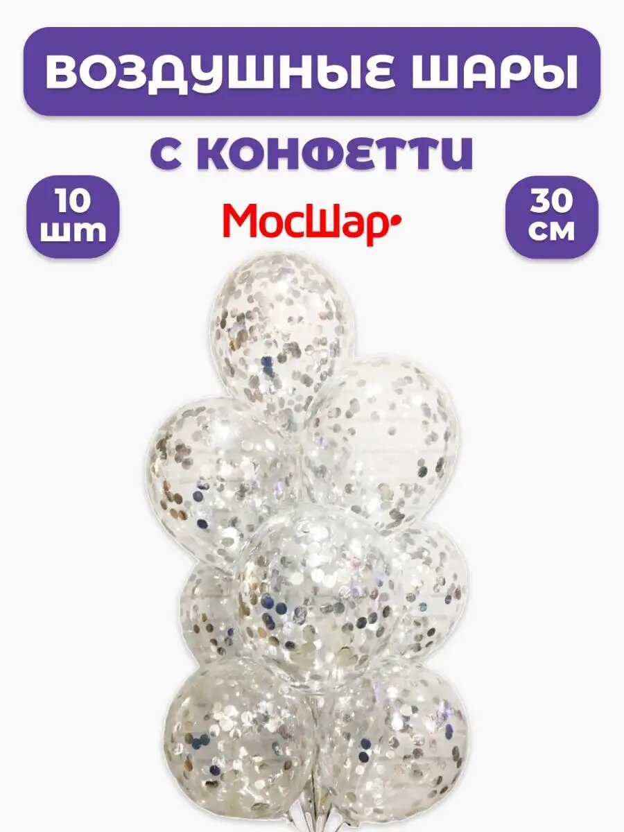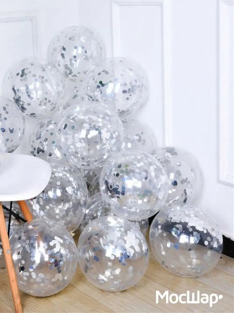 Купить Набор воздушных шаров с конфетти серебряное - 10шт 30см