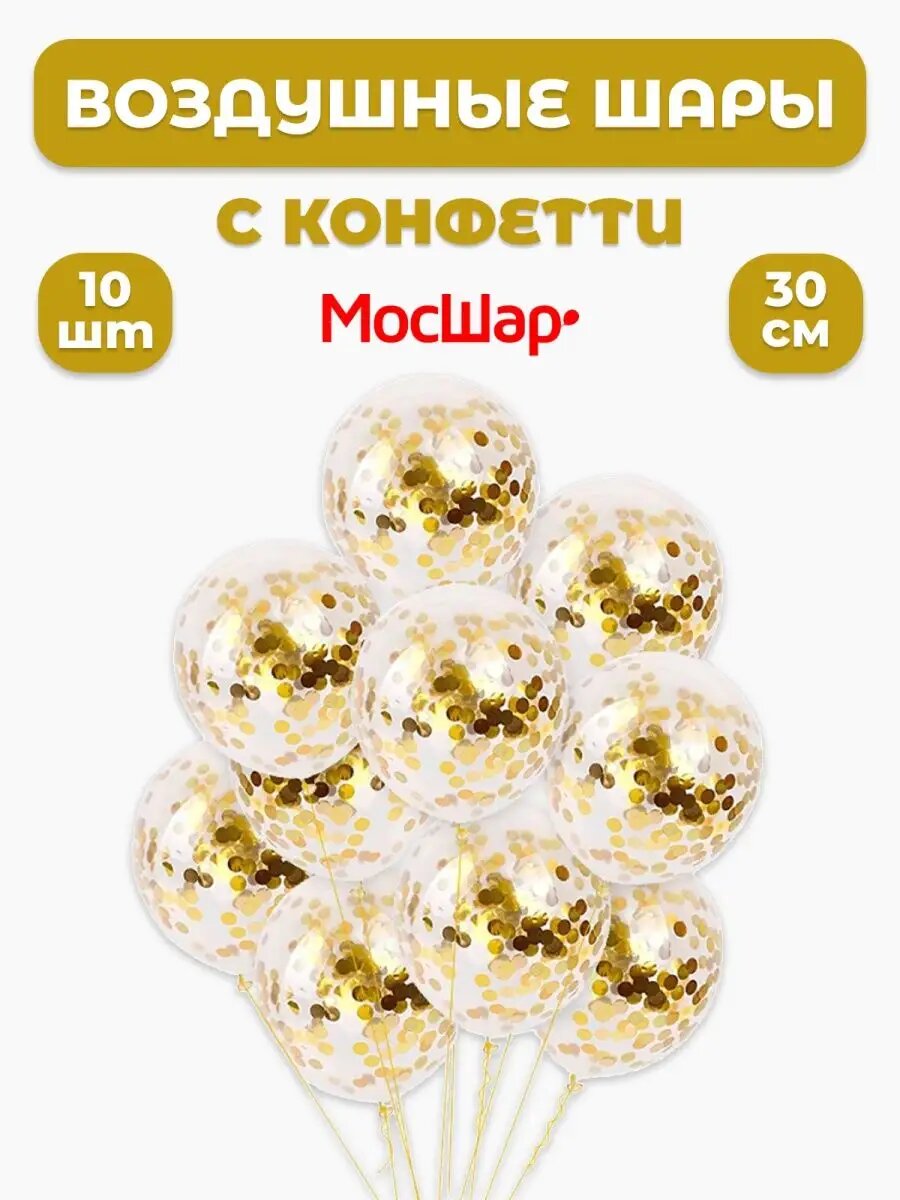 Купить Набор воздушных шаров с конфетти золотое - 10шт 30см