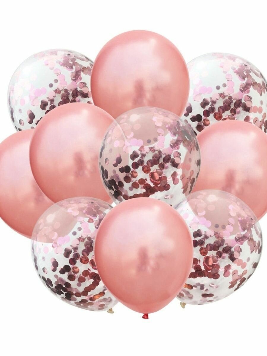 Купить Набор воздушных шаров с конфетти розовое золото - 10шт 30см