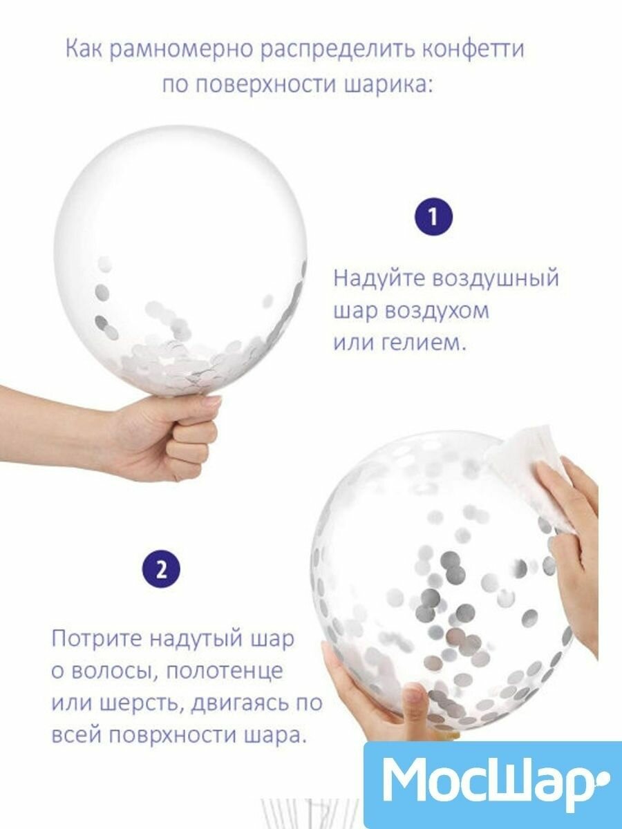 Набор воздушных шаров с конфетти серебро - 10шт 30см