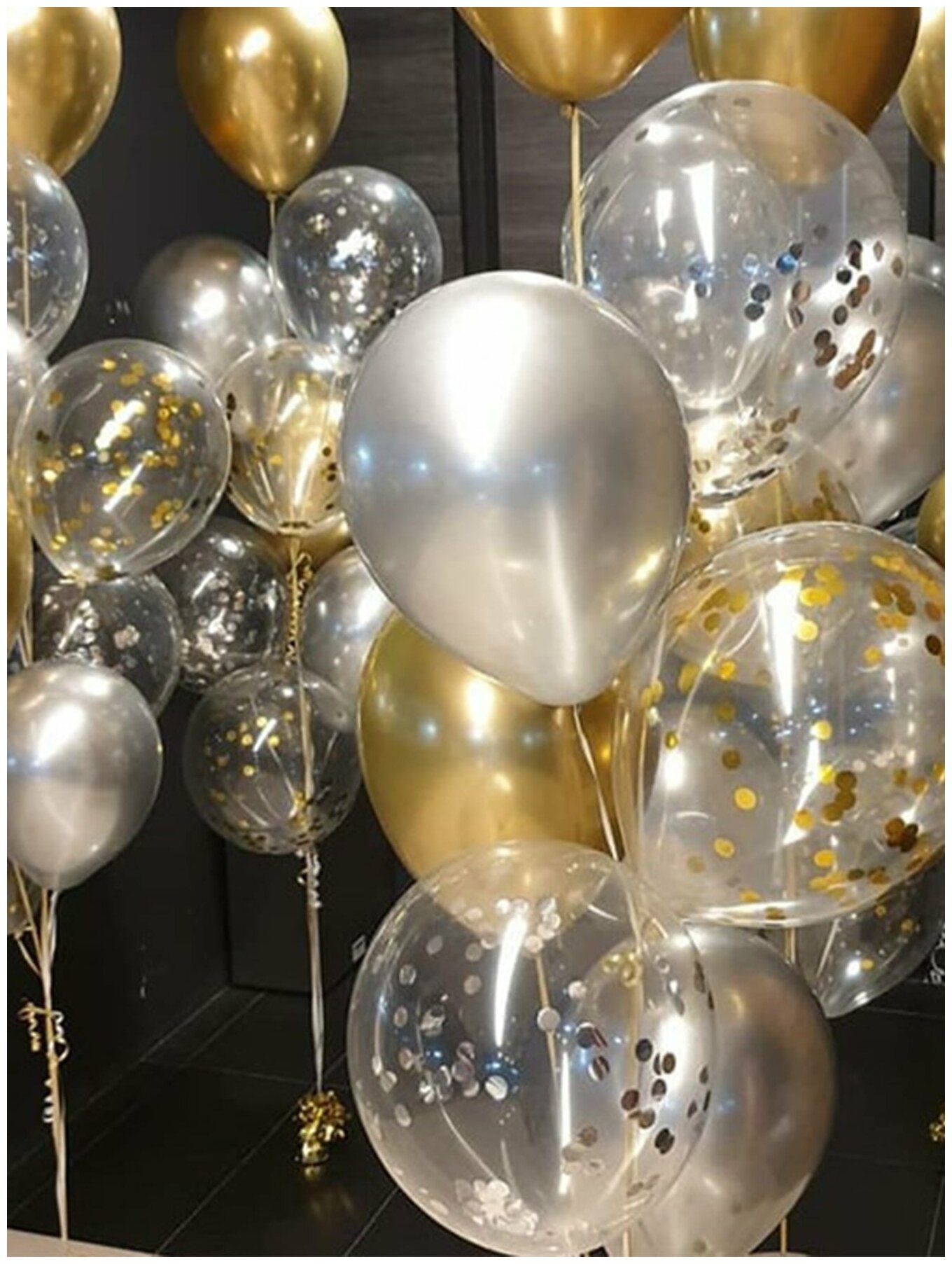 Фонтан из воздушных шаров с гелием Золото/серебро - 8 шт интересное: