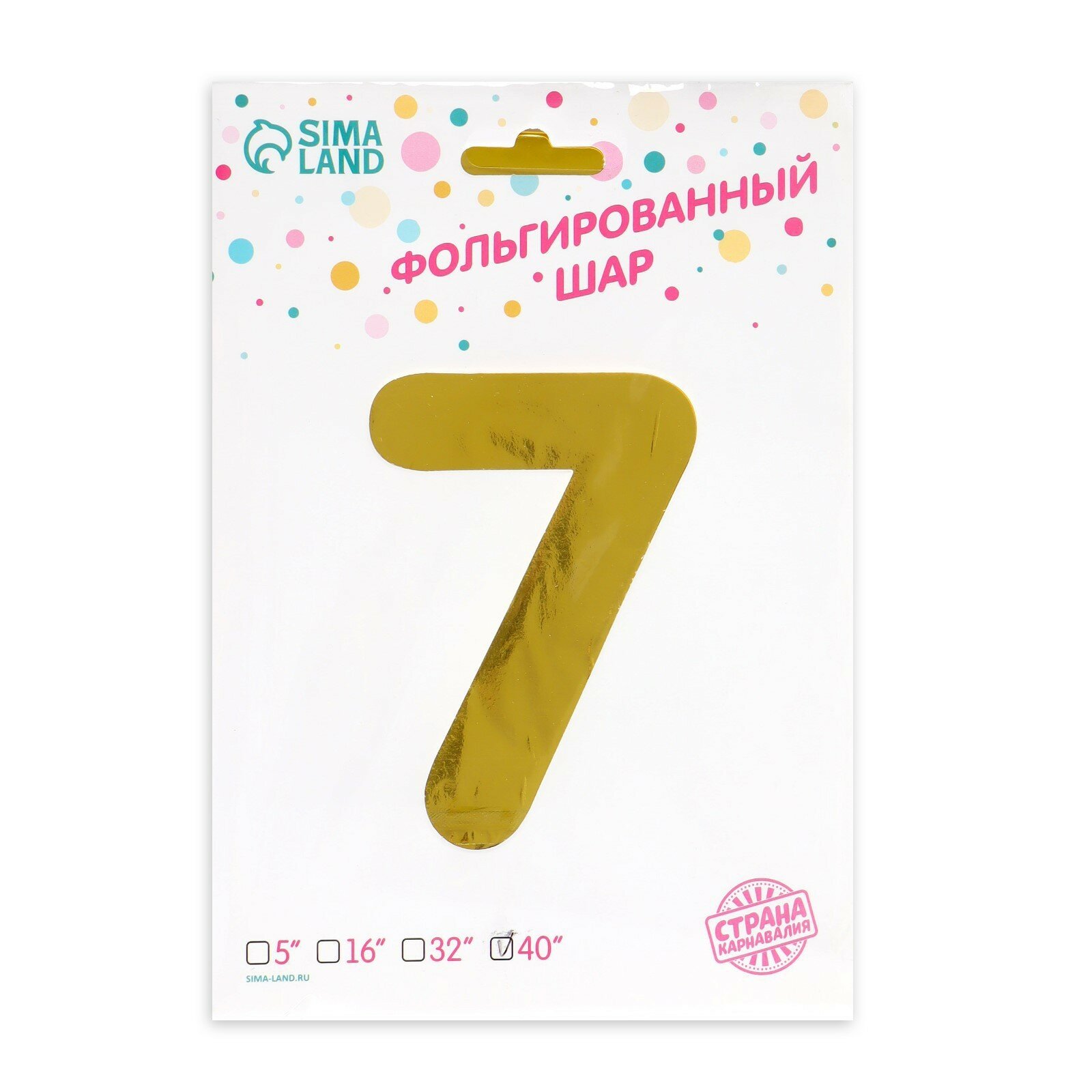 Шар фольгированный воздушный 40" Цифра 7, цвет золотистый, высота 100 см, Страна Карнавалия
