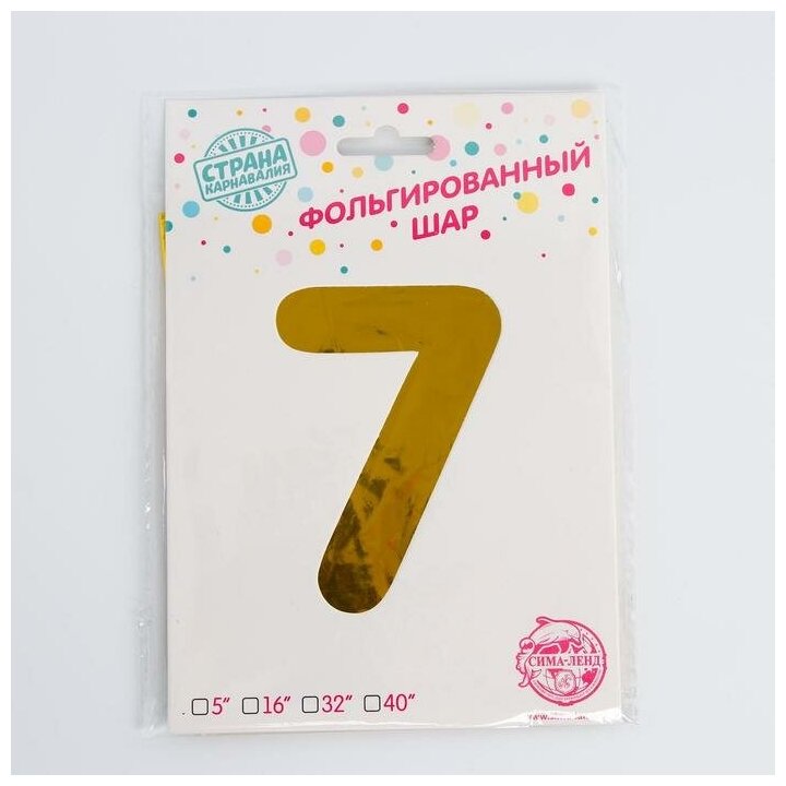 Шар воздушный фольгированный 40" "Цифра 7" цвет золотистый, высота 100 см, Страна Карнавалия