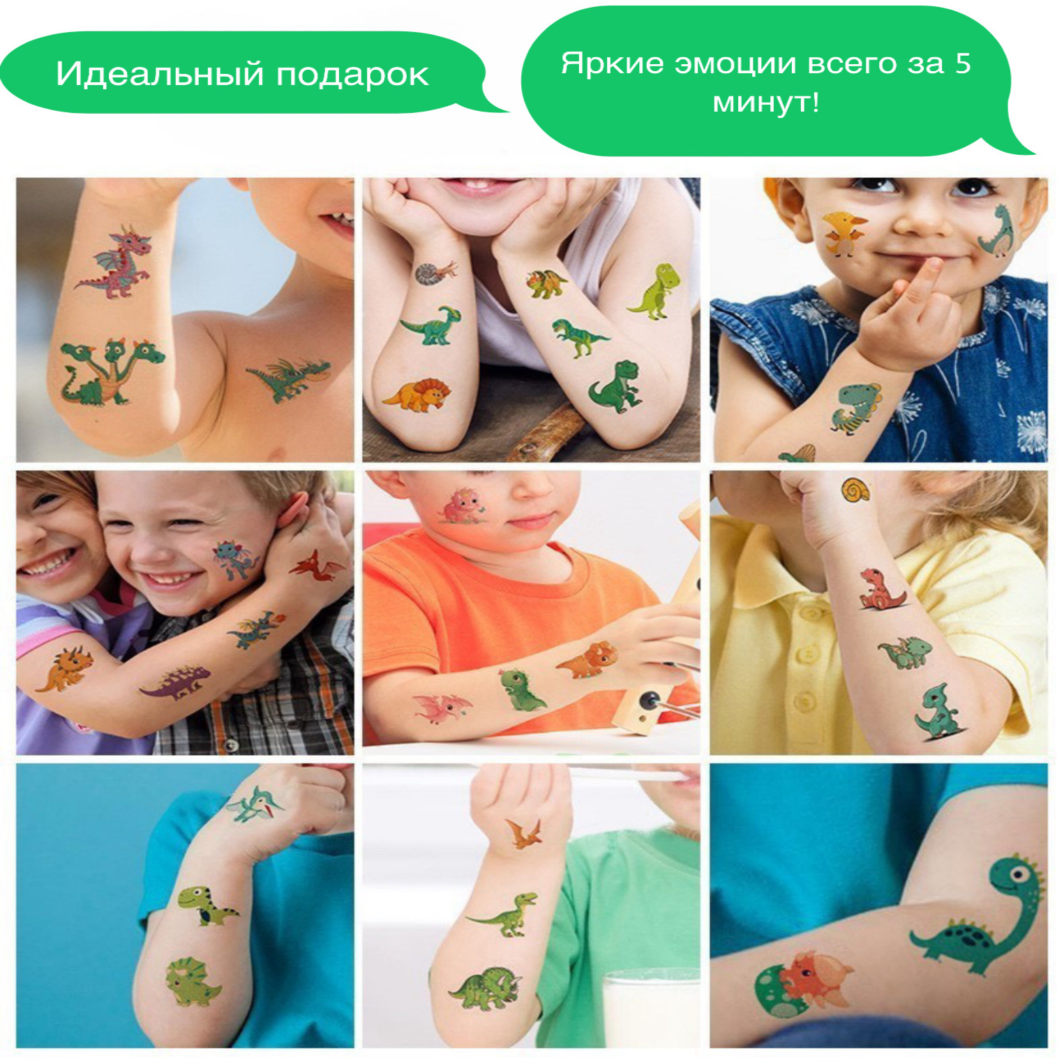 Купить Временные тату / Детские тату / Татуировки переводные / Переводилки / Переводки татушки "Динозавры"
