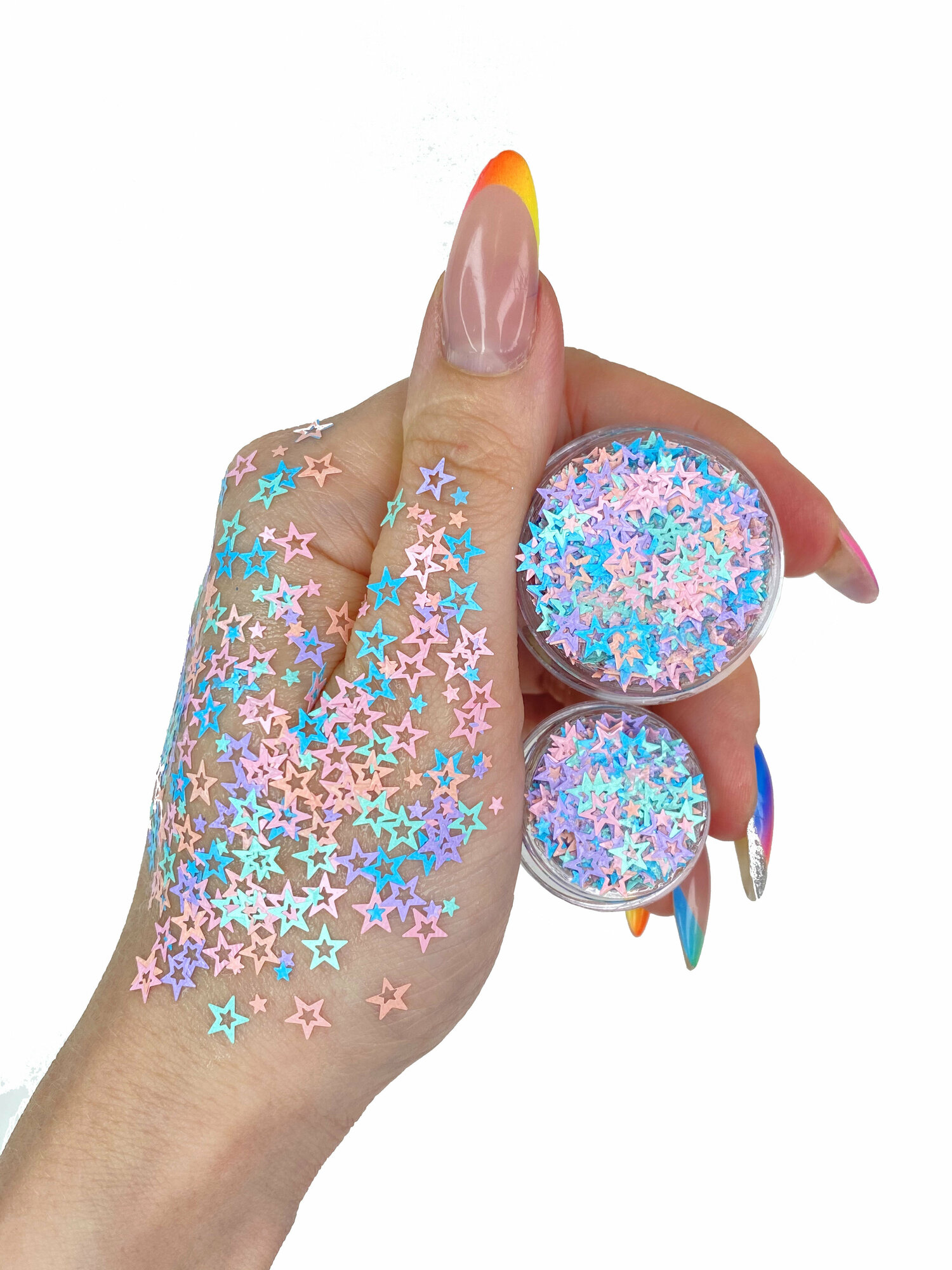 Queridos Glitters ГлиттерГель. Блёстки для лица и тела. Цвет "Звёзды Галактики Полупрозрачные" 3 мл.