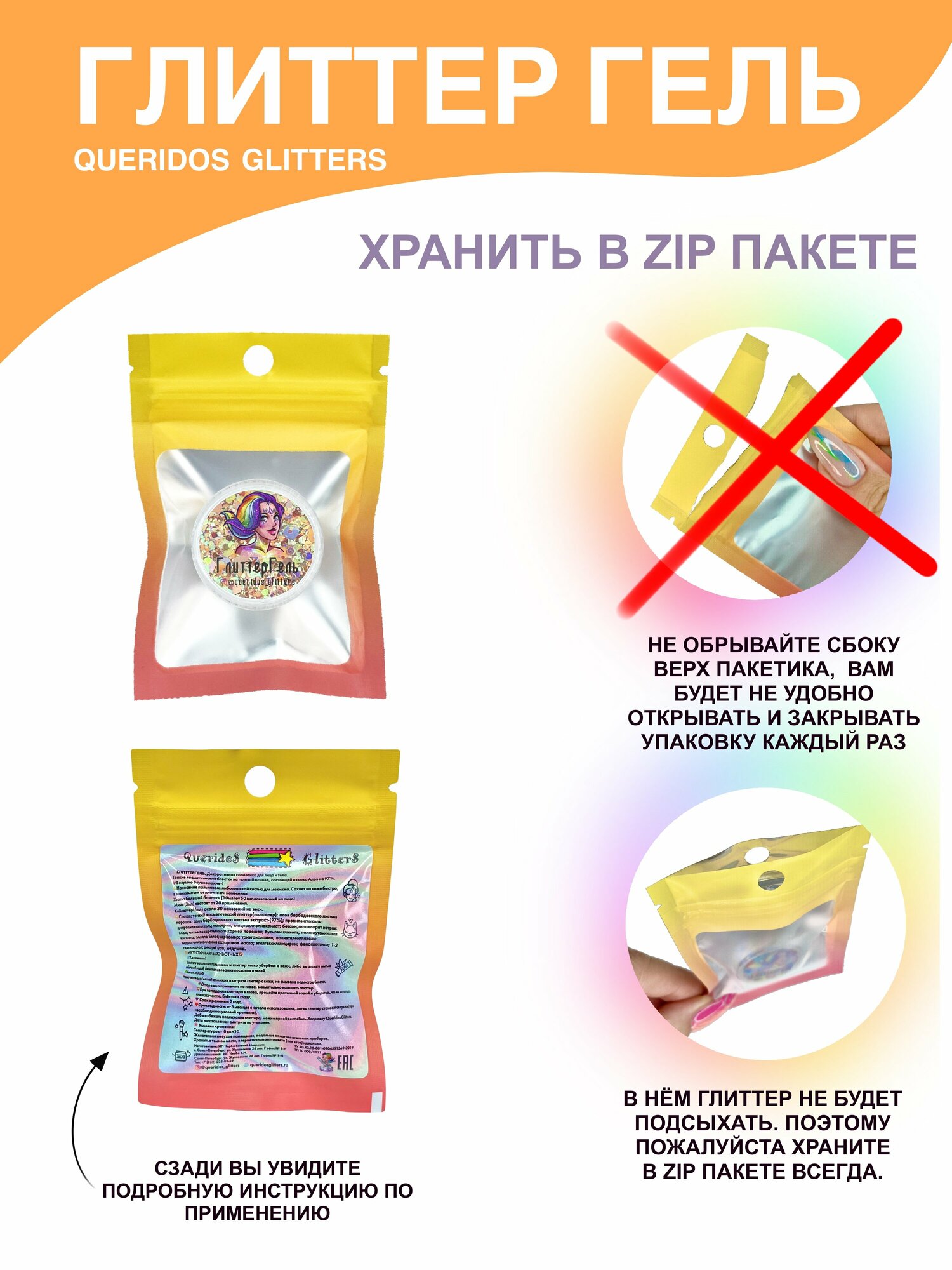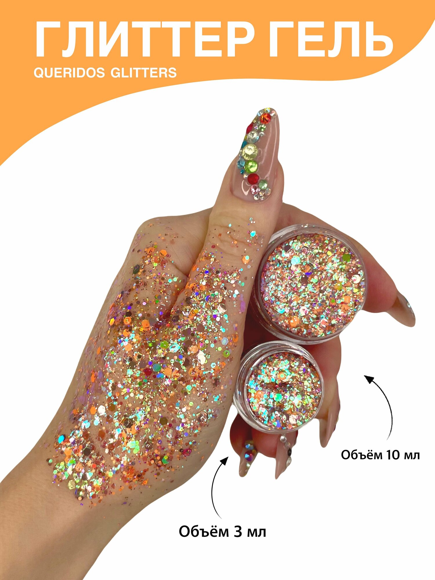 Queridos Glitters ГлиттерГель. Блёстки для лица и тела. Цвет "Идиллия" 3 мл.
