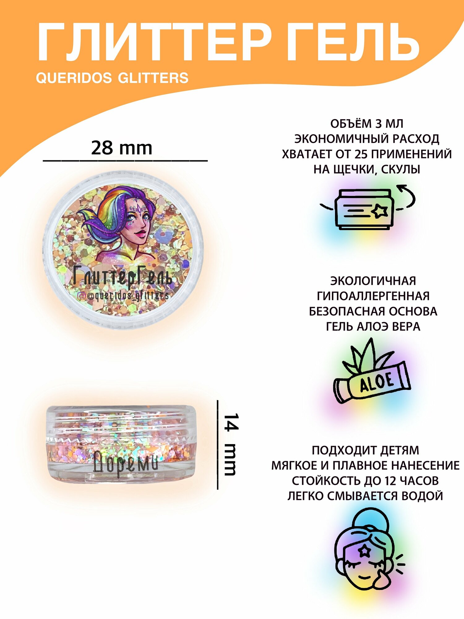 Купить Queridos Glitters ГлиттерГель. Блёстки для лица и тела. Цвет "Дореми" 3 мл.