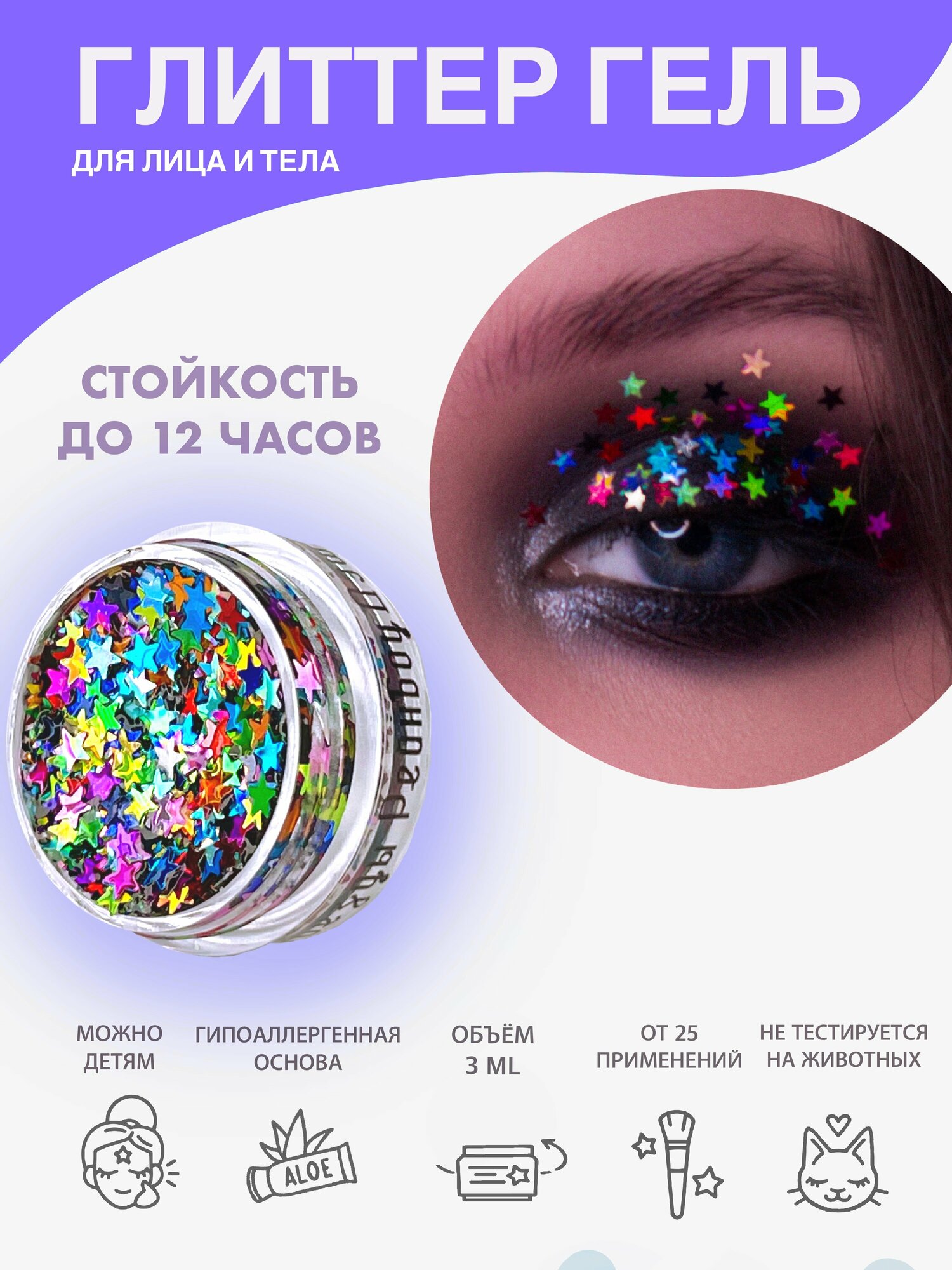 Queridos Glitters ГлиттерГель. Блёстки для лица и тела. Цвет "Звезды Моя прелесть" 3 мл.