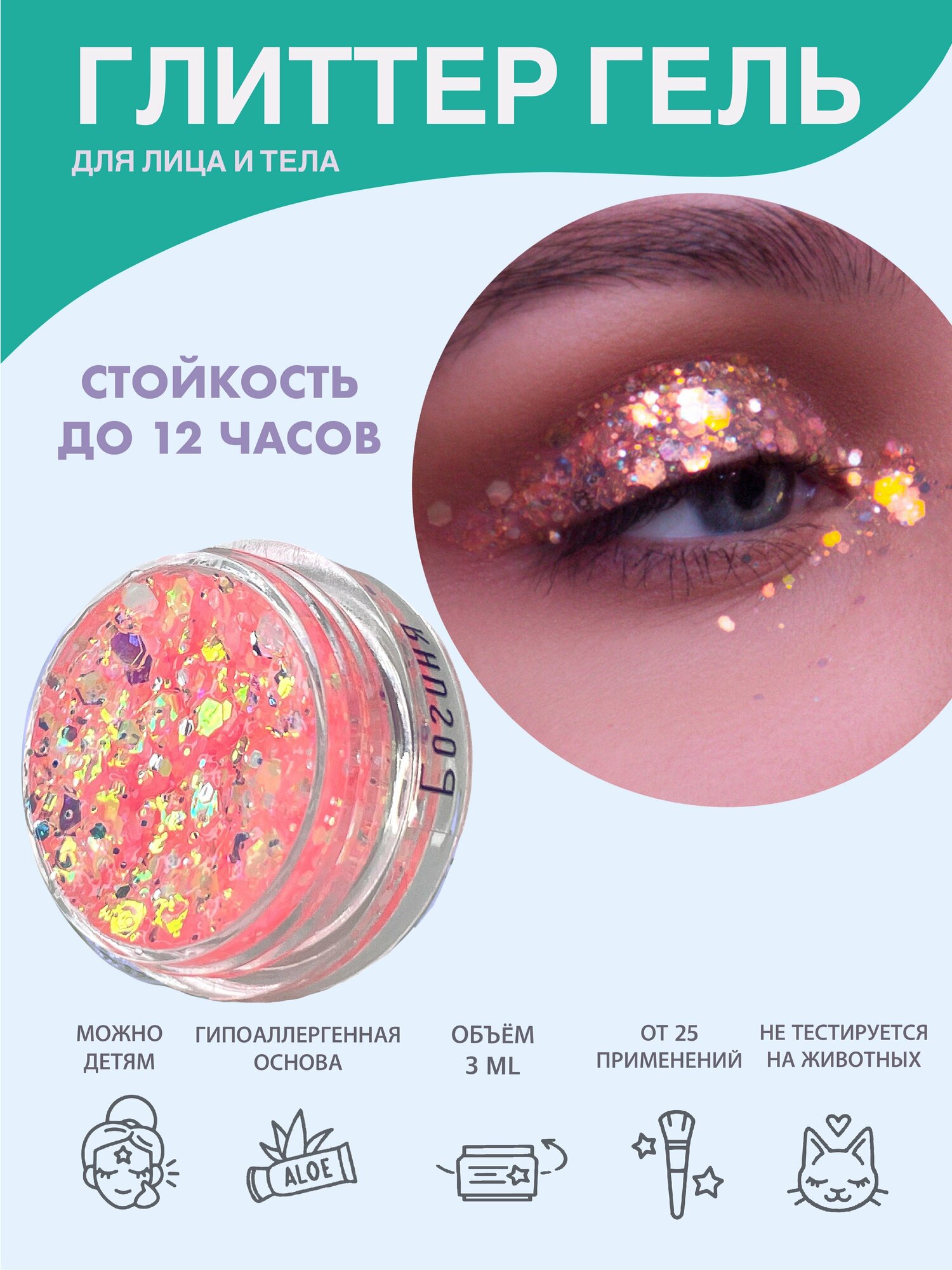 Queridos Glitters Глиттергель. Блёстки для лица и тела. Цвет "Венера" 3 мл.