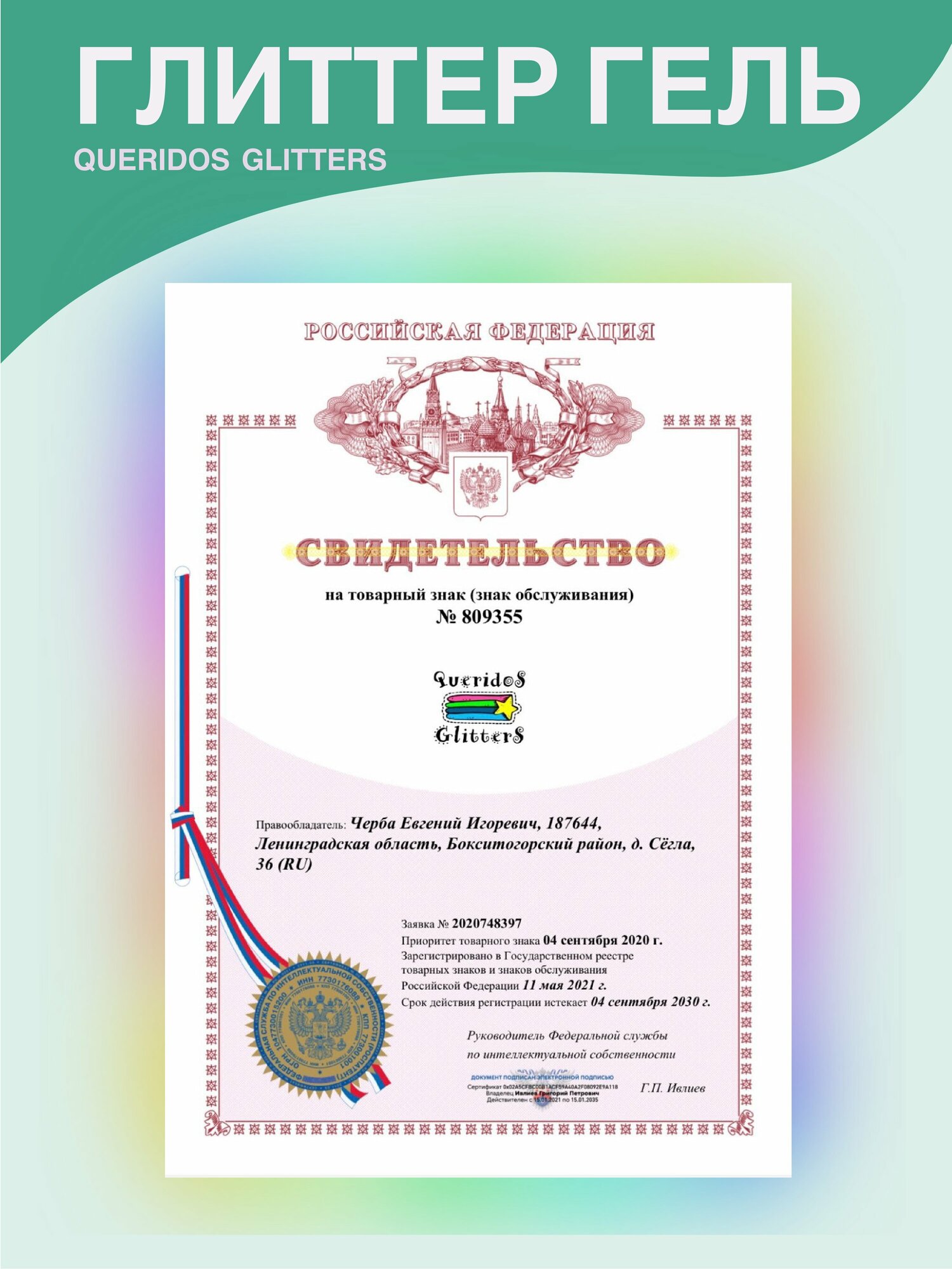 Queridos Glitters ГлиттерГель. Блёстки для лица и тела. Цвет "Мир" 3 мл.
