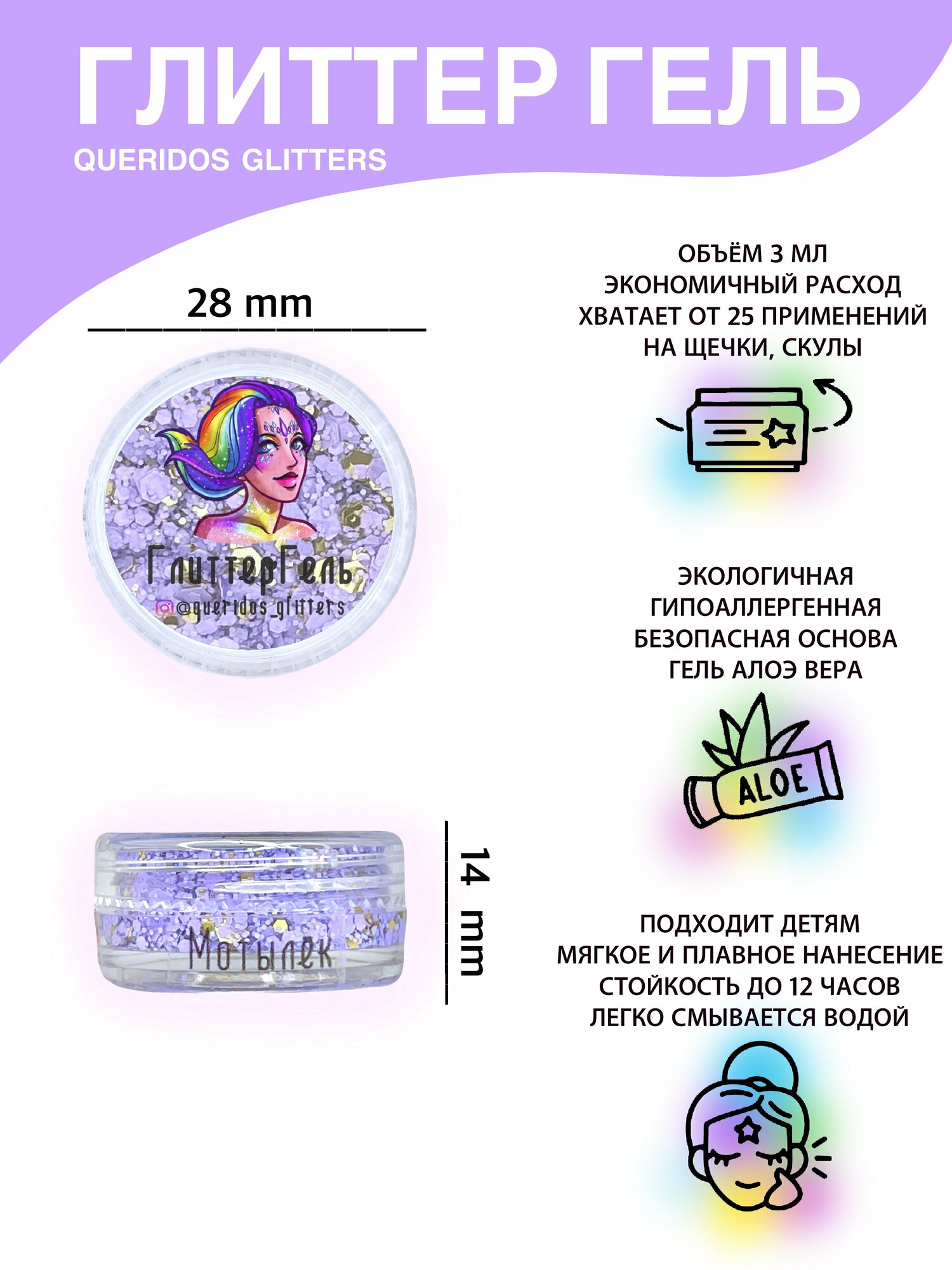 Купить Queridos Glitters ГлиттерГель. Блёстки для лица и тела. Цвет "Мотылек" 3 мл.