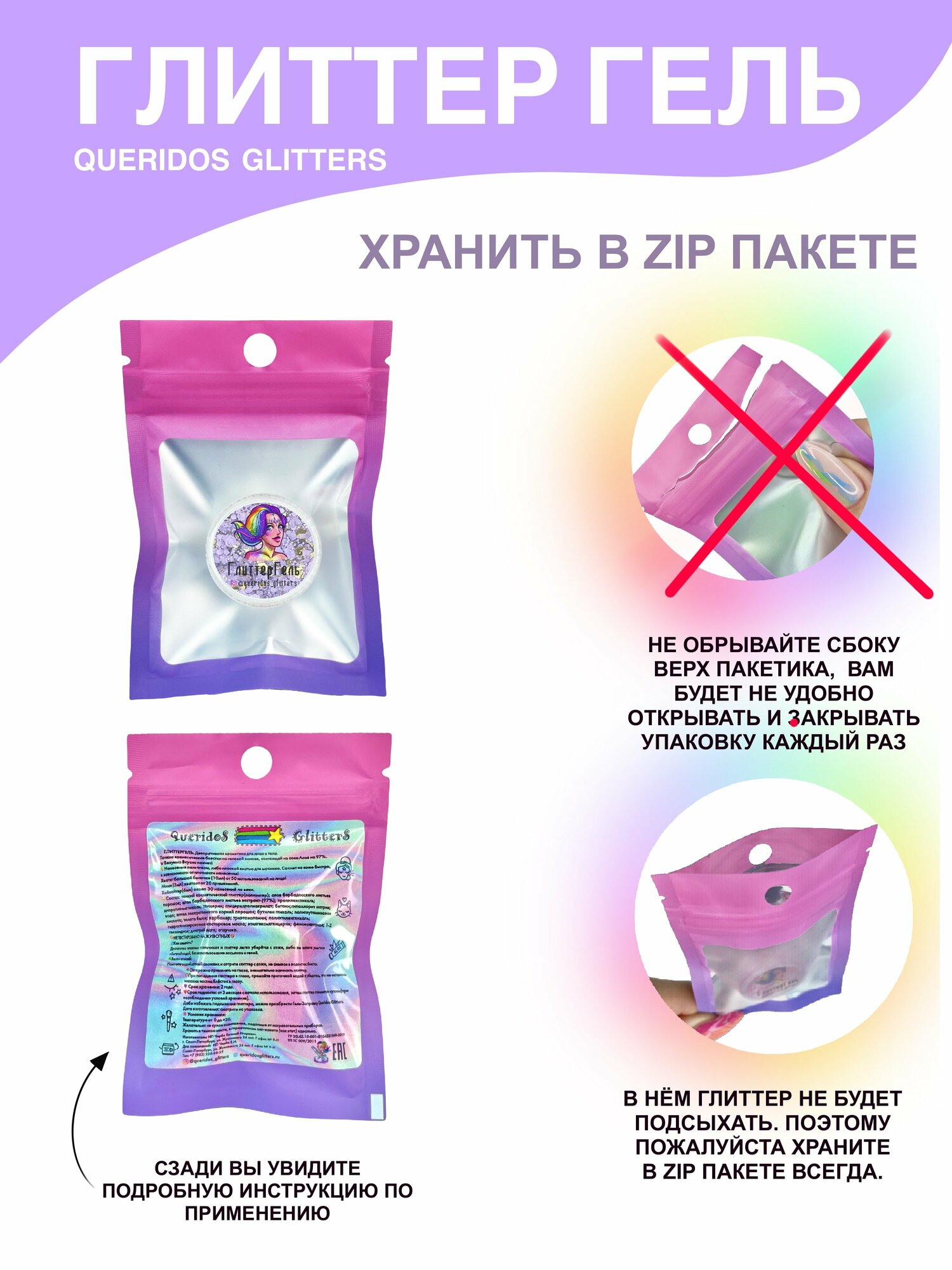 Queridos Glitters ГлиттерГель. Блёстки для лица и тела. Цвет "Идиллия" 3 мл.