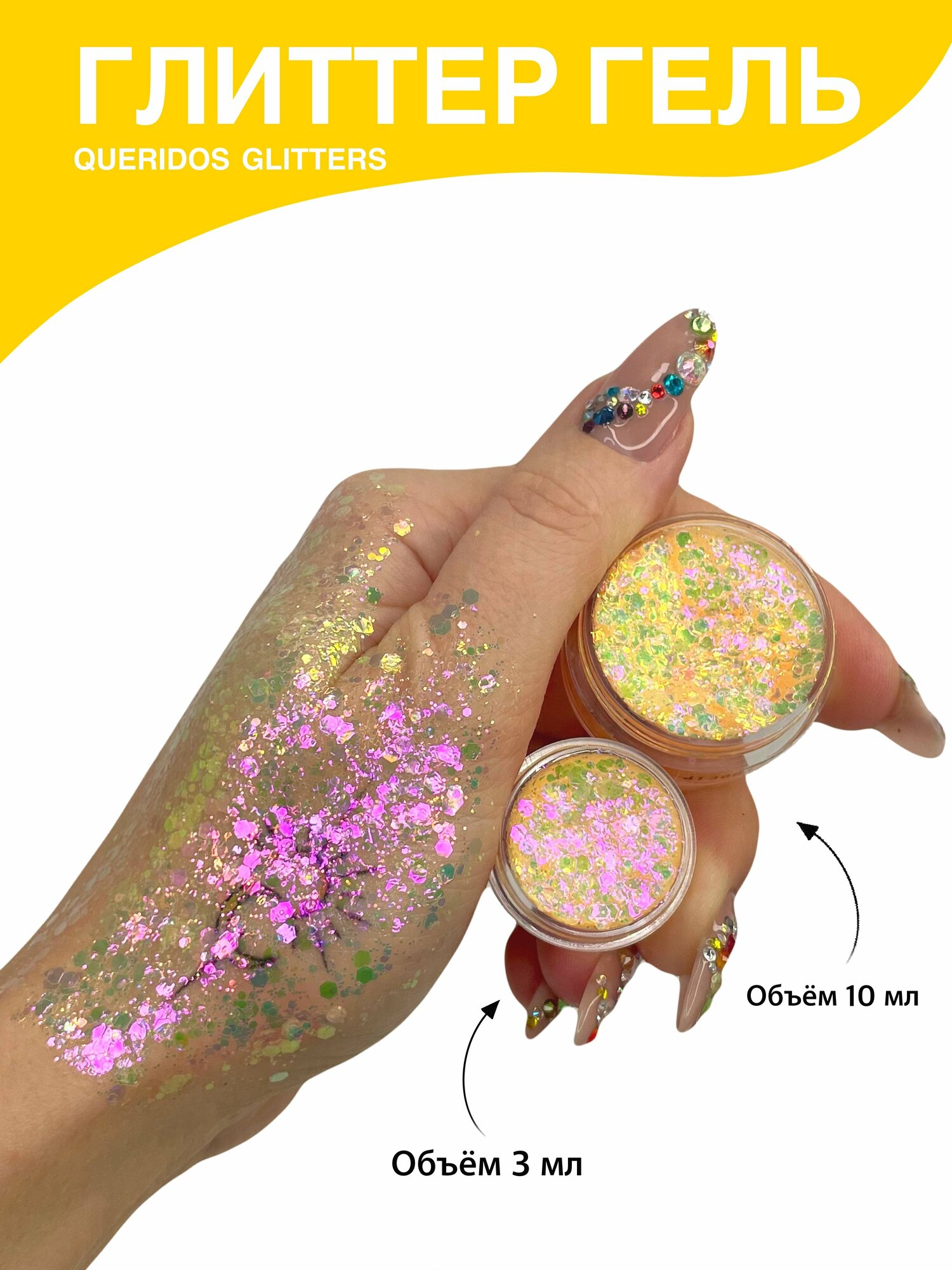 Queridos Glitters ГлиттерГель. Блёстки для лица и тела. Цвет "Глянец" 3 мл.