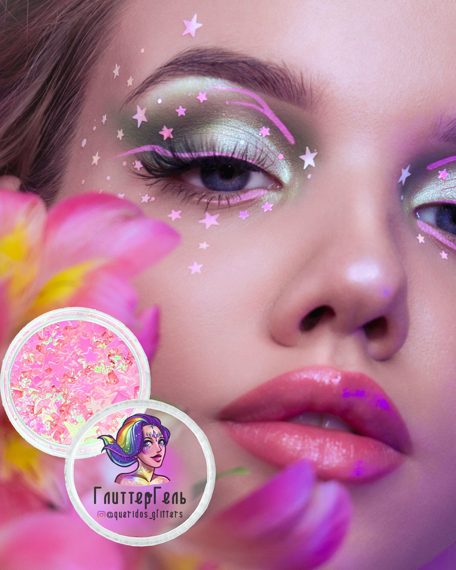 Купить Queridos Glitters ГлиттерГель. Блёстки для лица и тела. Цвет "Звезды Моя прелесть" 3 мл.