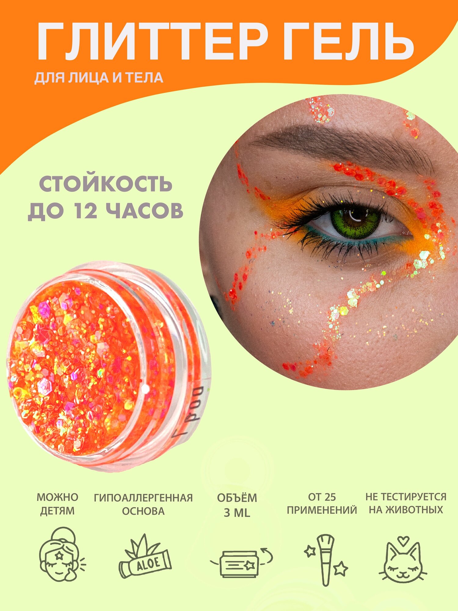 Queridos Glitters ГлиттерГель. Блёстки для лица и тела. Цвет "Апельсин" 3 мл.