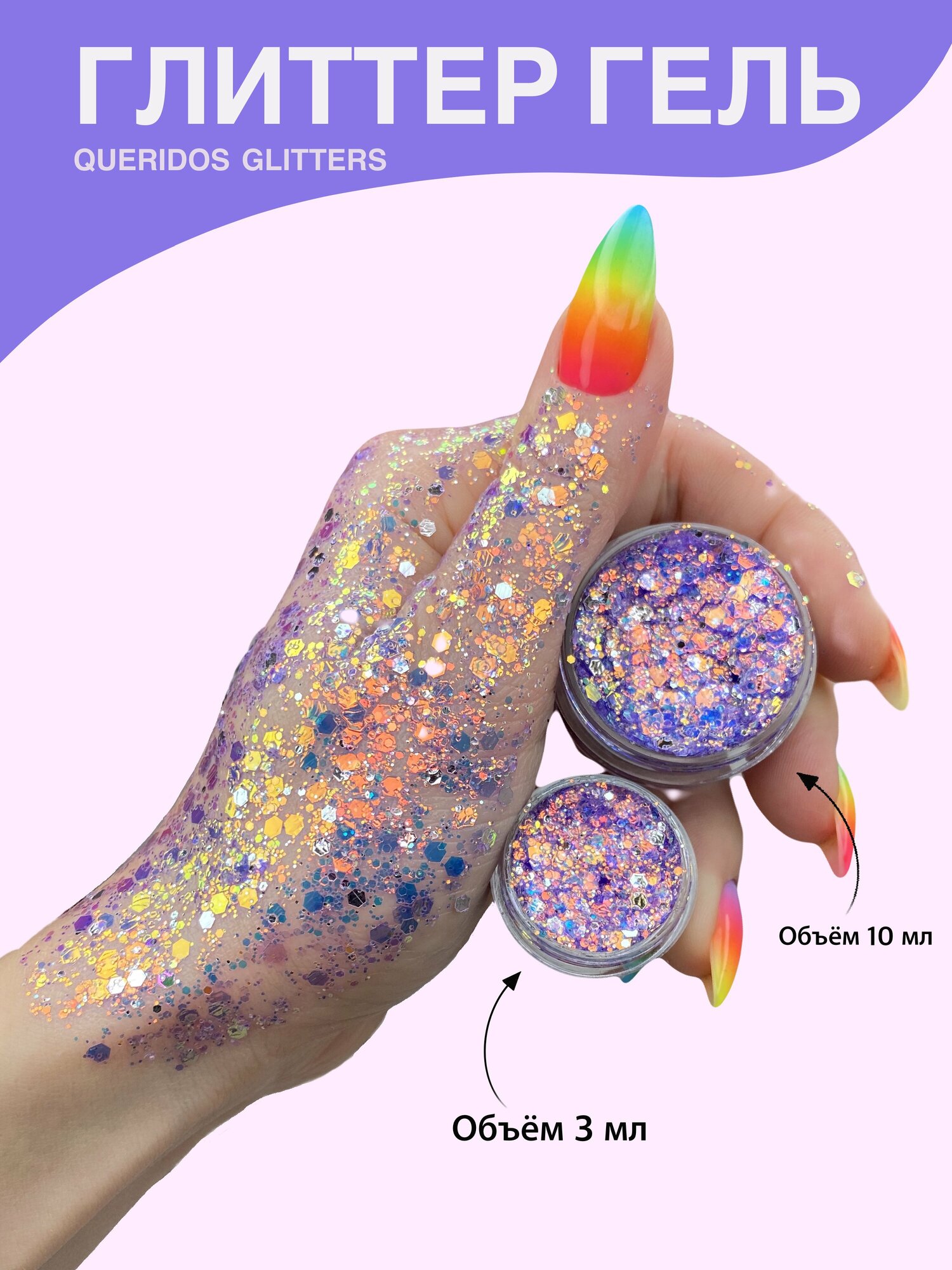 Купить Queridos Glitters ГлиттерГель. Блёстки для лица и тела. Цвет "Крестраж" 3 мл.