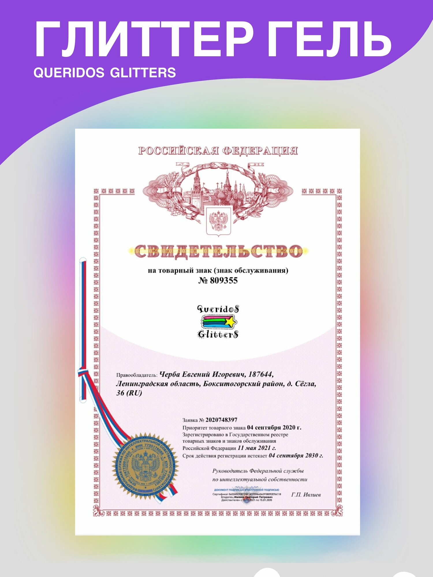 Queridos Glitters ГлиттерГель. Блёстки для лица и тела. Цвет "Благородство" 3 мл.