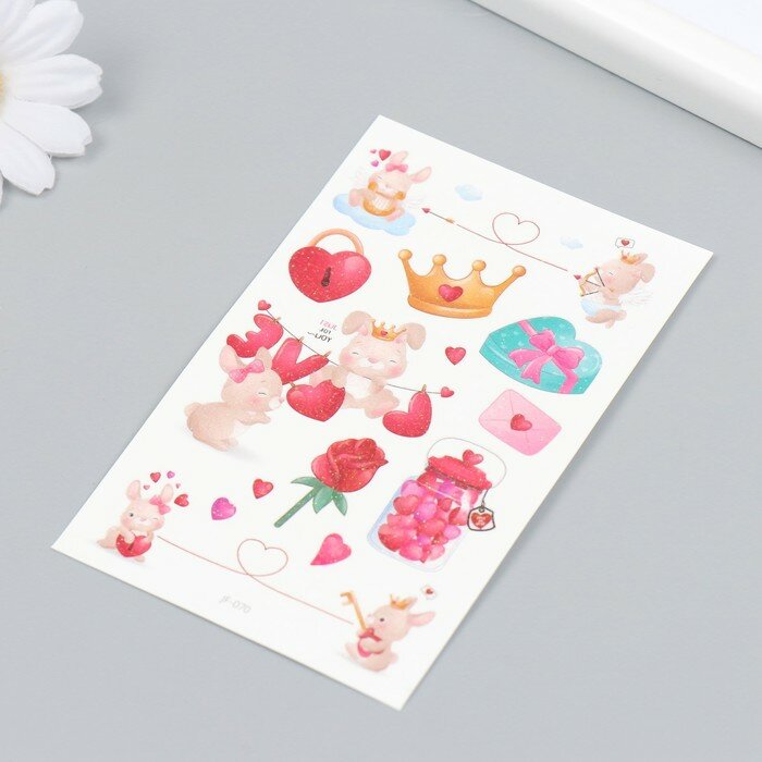 Купить Татуировка на тело цветная "Зайки-романтики" блестки 12х7,5 см
