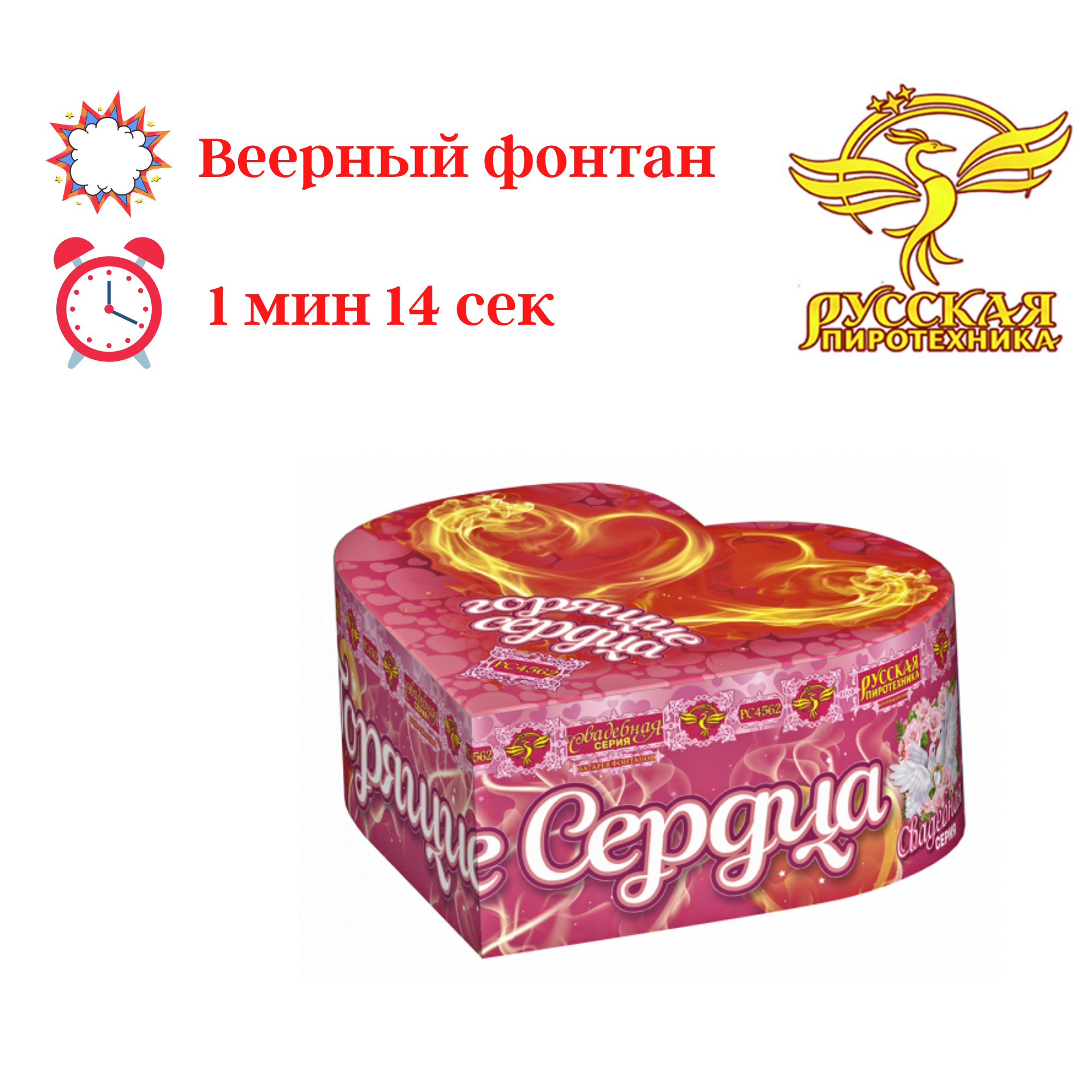 Ниже Вы можете прочитать отзывы на Фонтан пиротехнический Русская пиротехника Горящие сердца РС4562, ознакомится с подробными характеристиками, посмотреть интересные обзоры и фотографии на Фонтан пиротехнический Русская пиротехника Горящие сердца РС4562.