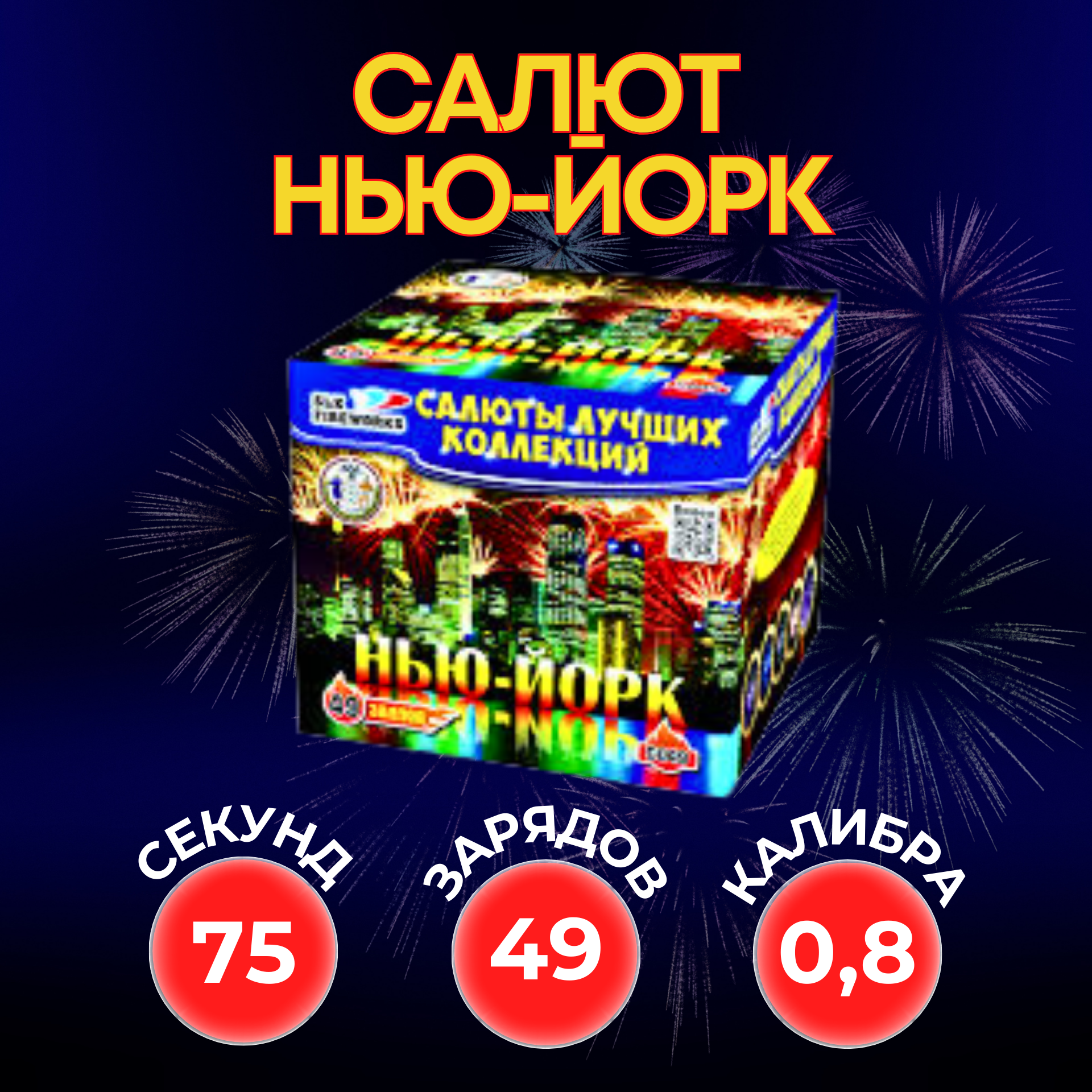 Салют Фейерверк "Нью-Йорк" калибр 0,8" / 49 зарядов интересное: