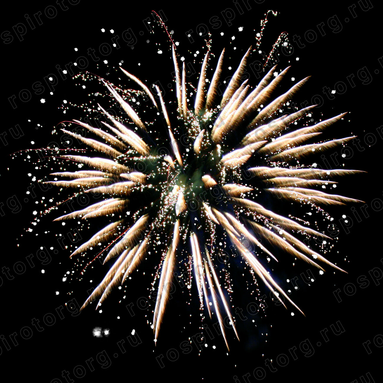 | Эффекты | разноцветные кометы разрываются сферами из: 1. синих и красных огней; 2. фиолетовых и зелёных мерцающих огней; 3. серебряных форсов с красными огнями на концах и серебряных мерцающих огней; 4. золотых форсов и зелёных мерцающих огней; 5. серебряных форсов |