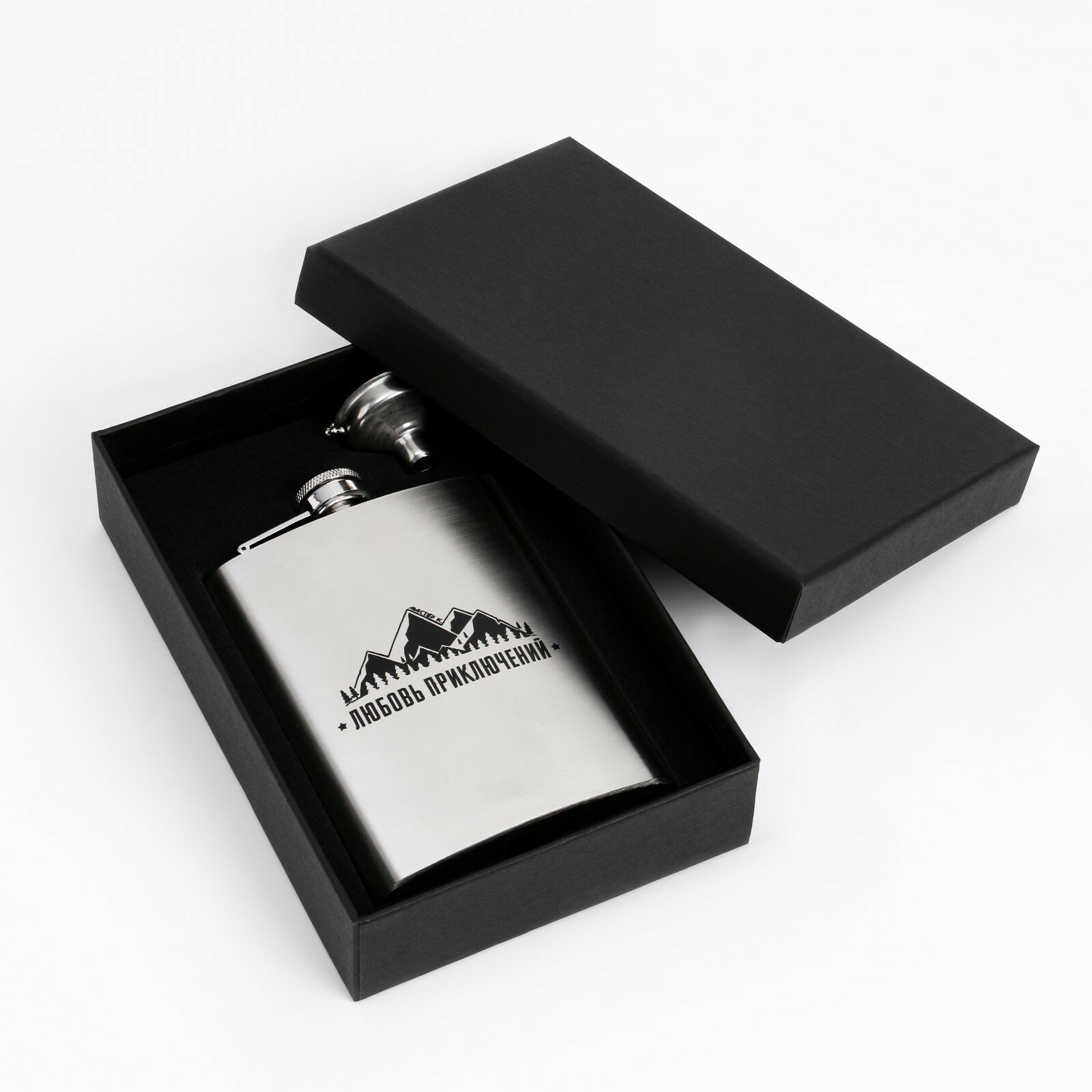 Фляжка для алкоголя и воды "Любовь приключений", нержавеющая сталь, 240 мл, с воронкой