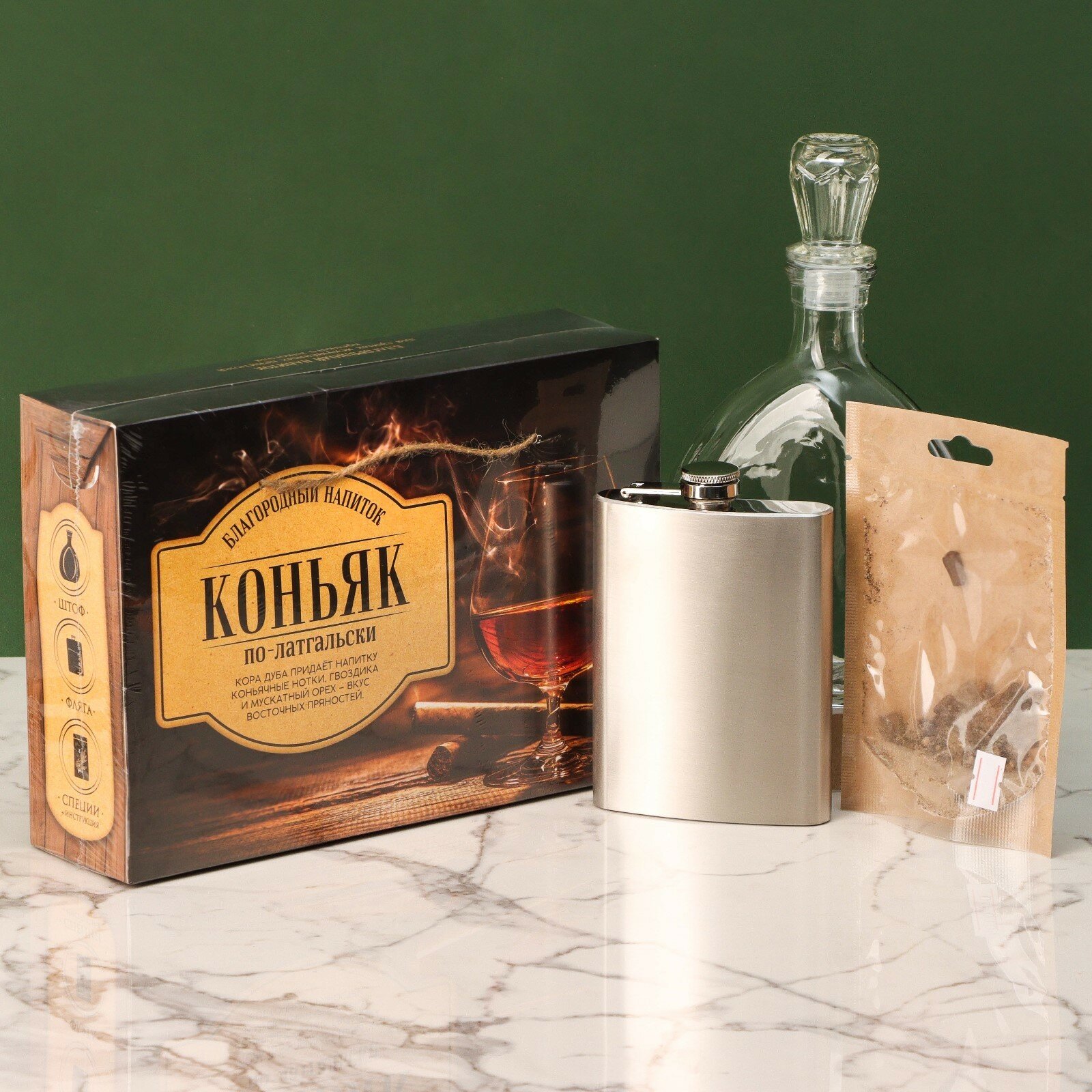 Купить Набор для приготовления алкоголя «Коньяк по-латгальски»: набор трав и специй 6 г., штоф 500 мл., фляжка 240 мл., инструкция
