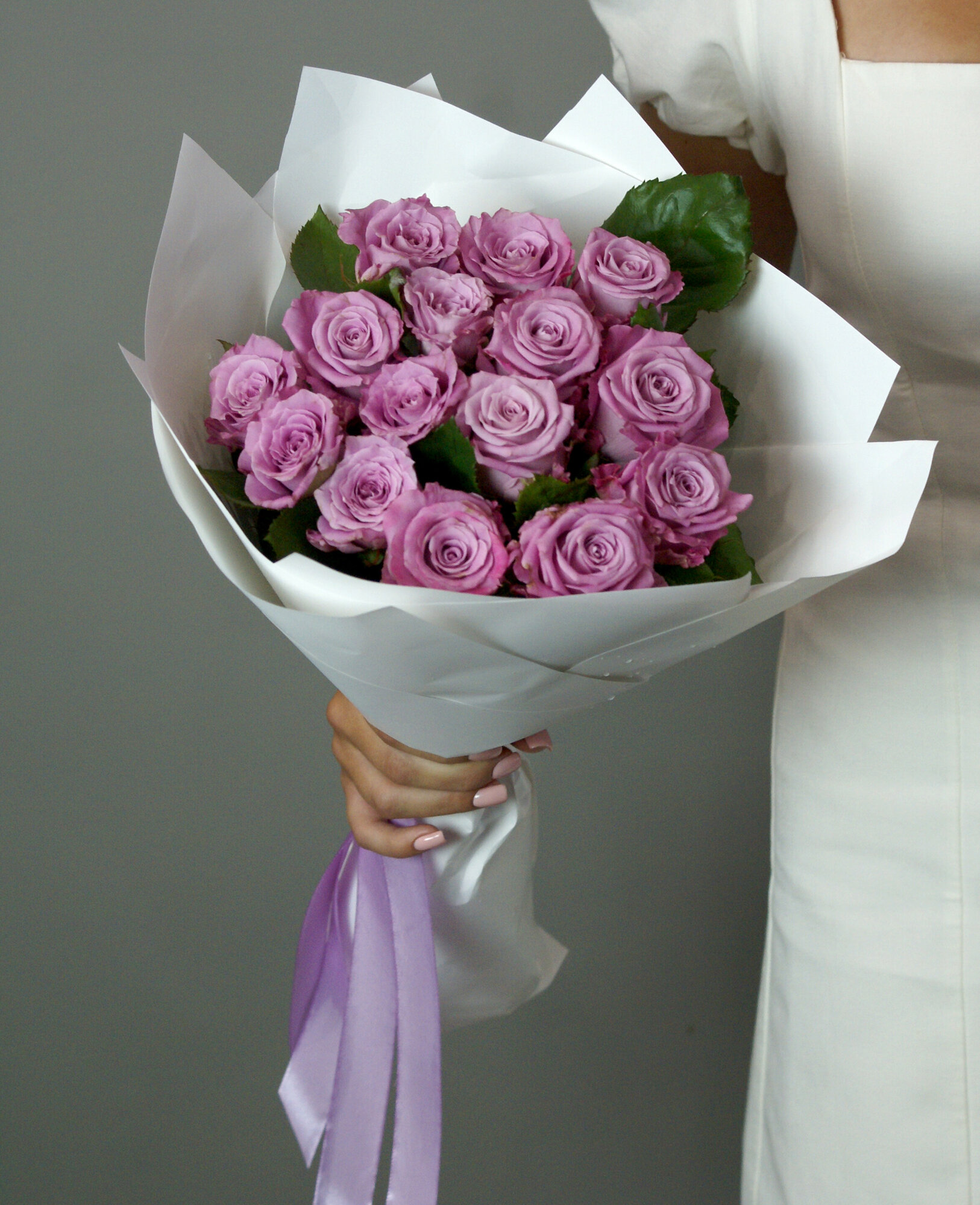 Розы фиолетовые 15 штук "Меритим" 43 см букет