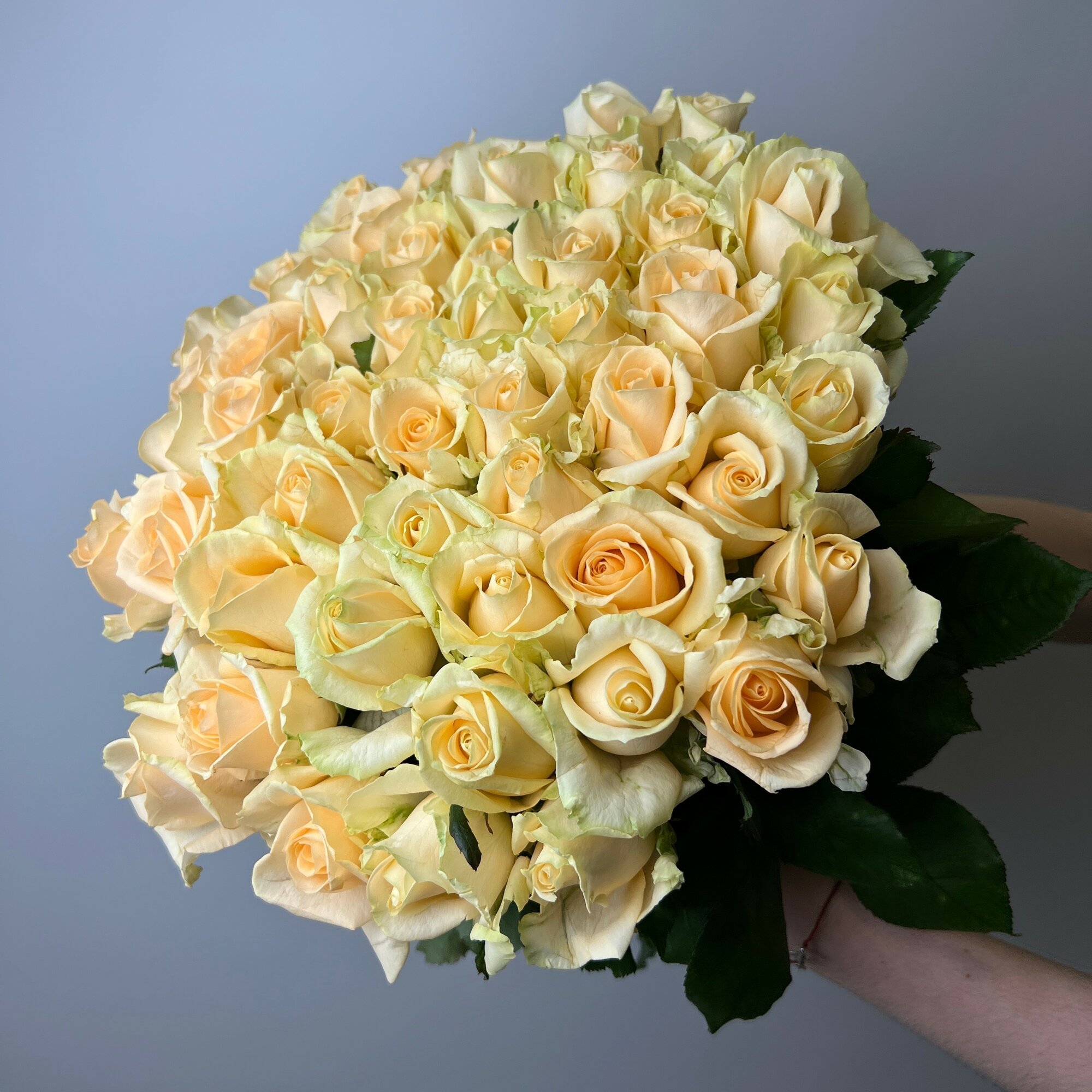 Живые цветы букет кремовых роз 51 шт 40 см Мы вместе