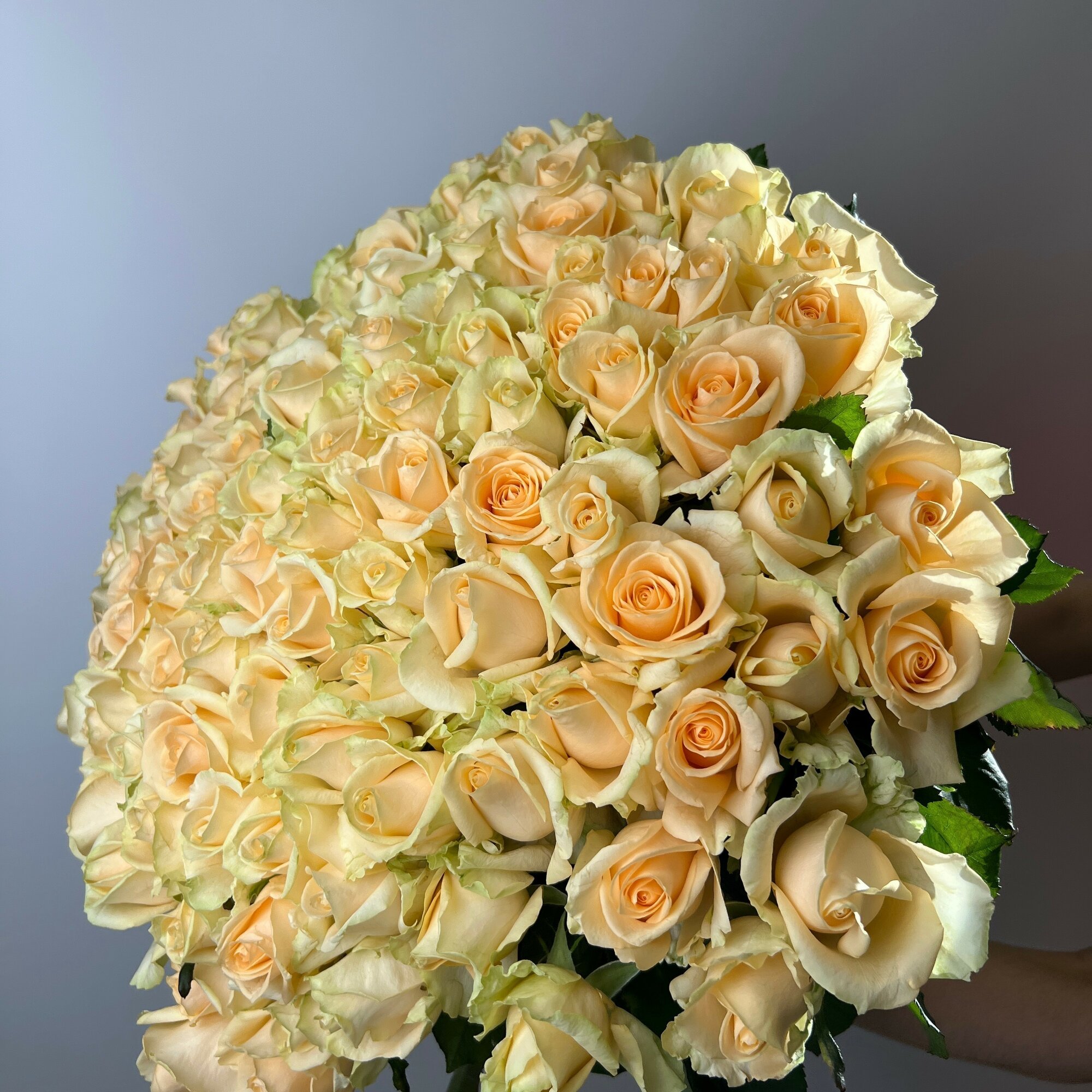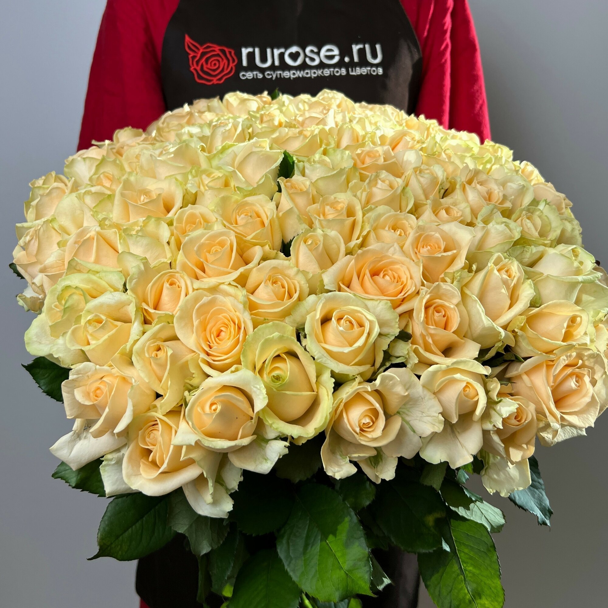 Купить Живые цветы букет роз 101 шт 60 см кремовый