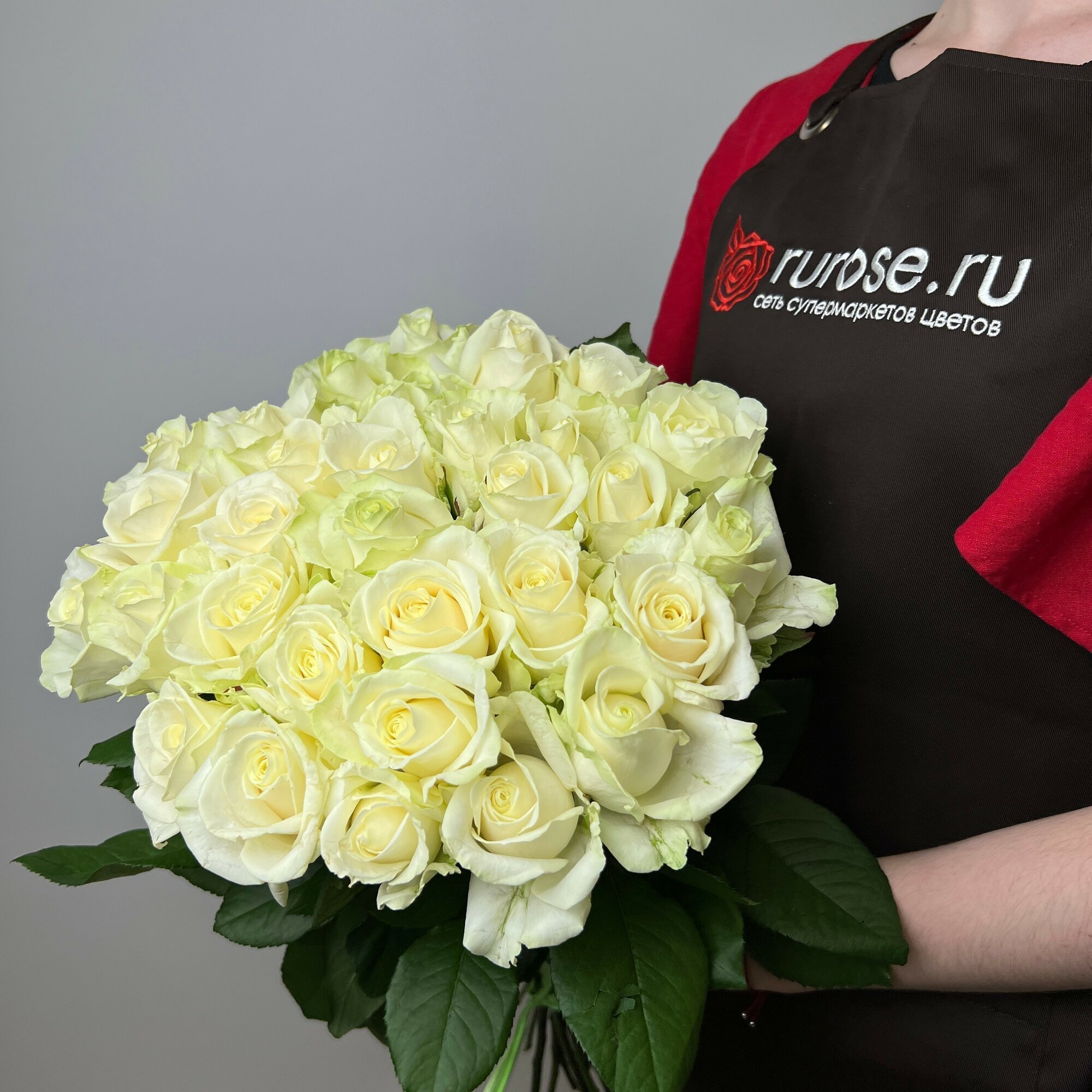 Купить Живые цветы букет роз 31 шт. 50 см. белые