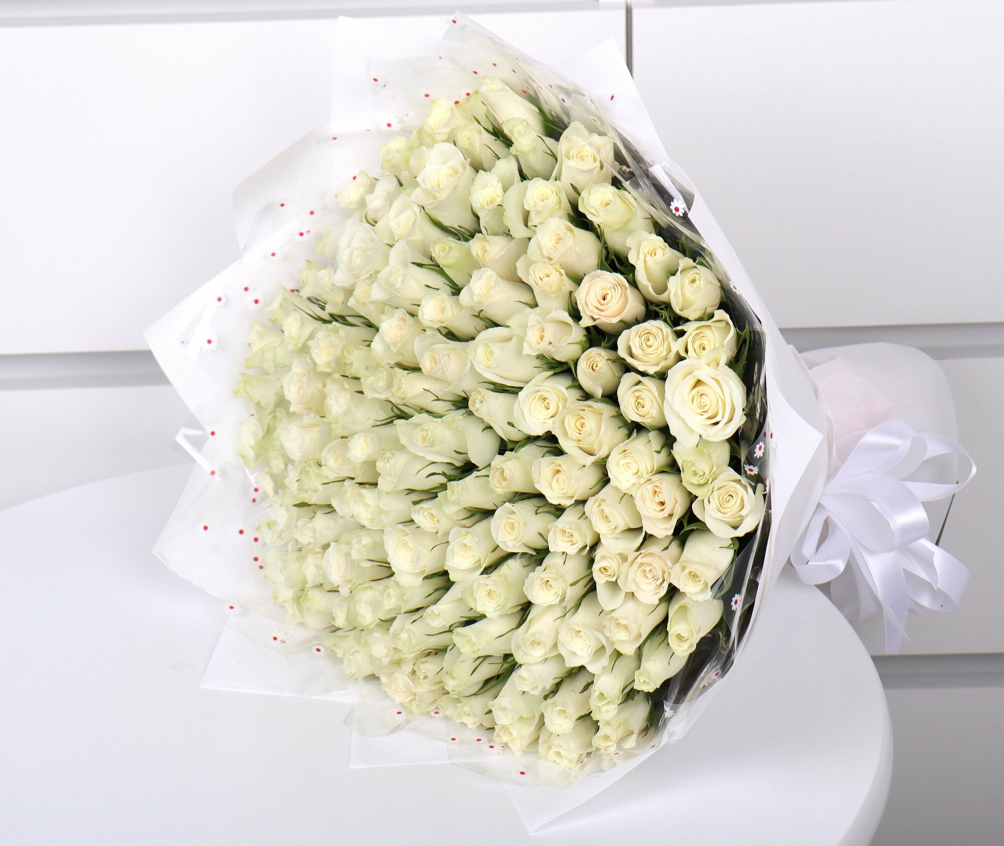 Монобукет из 101 белой розы 40 см интересное:
