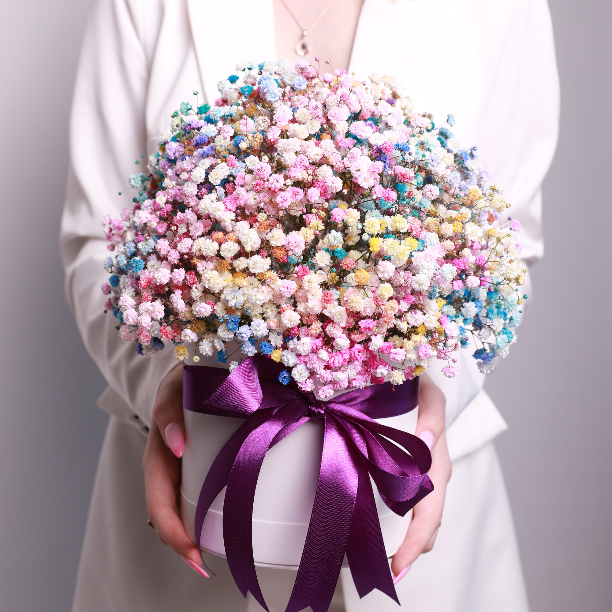 Купить Гипсофила радужная в белой коробке. Букет AR0241 ALMOND ROSES