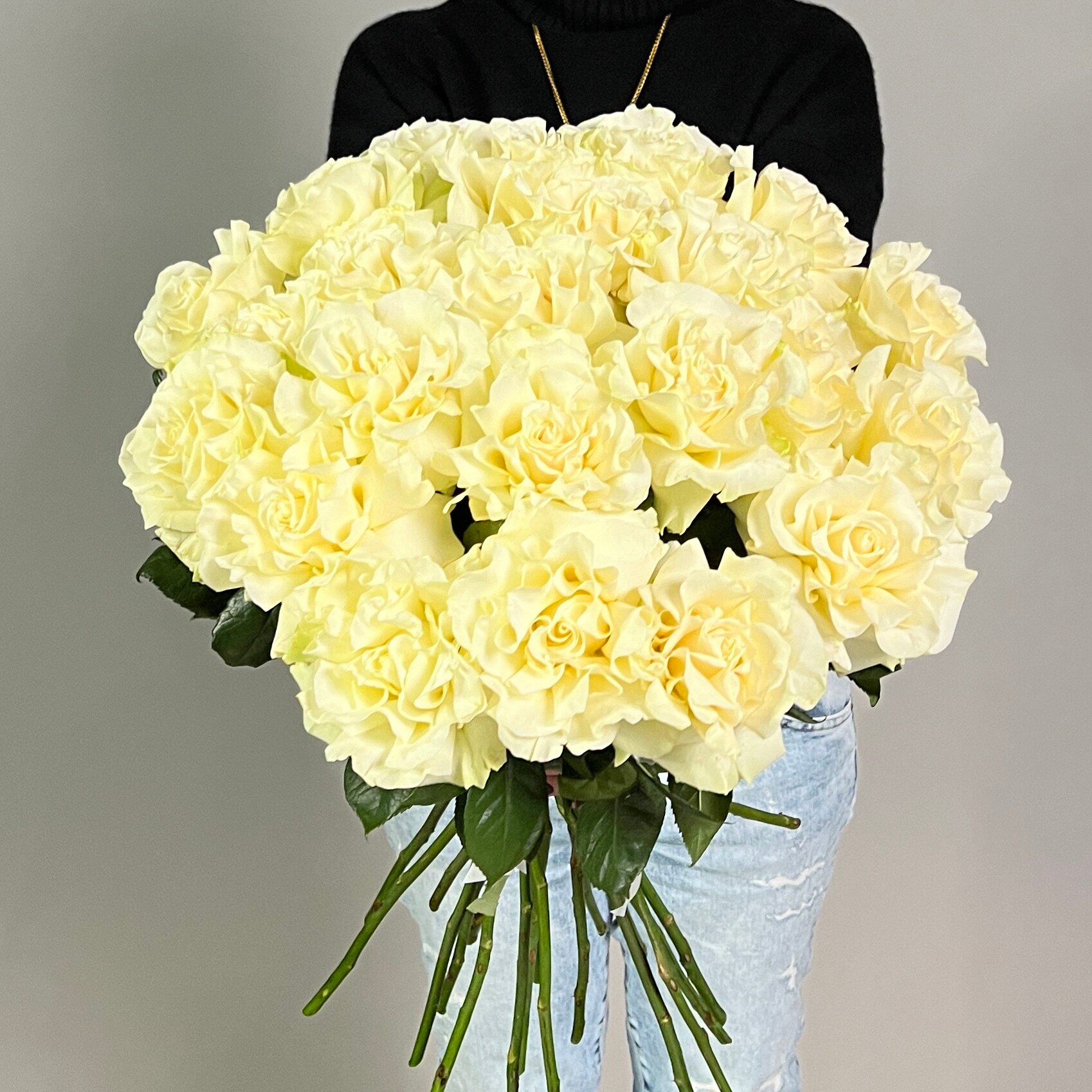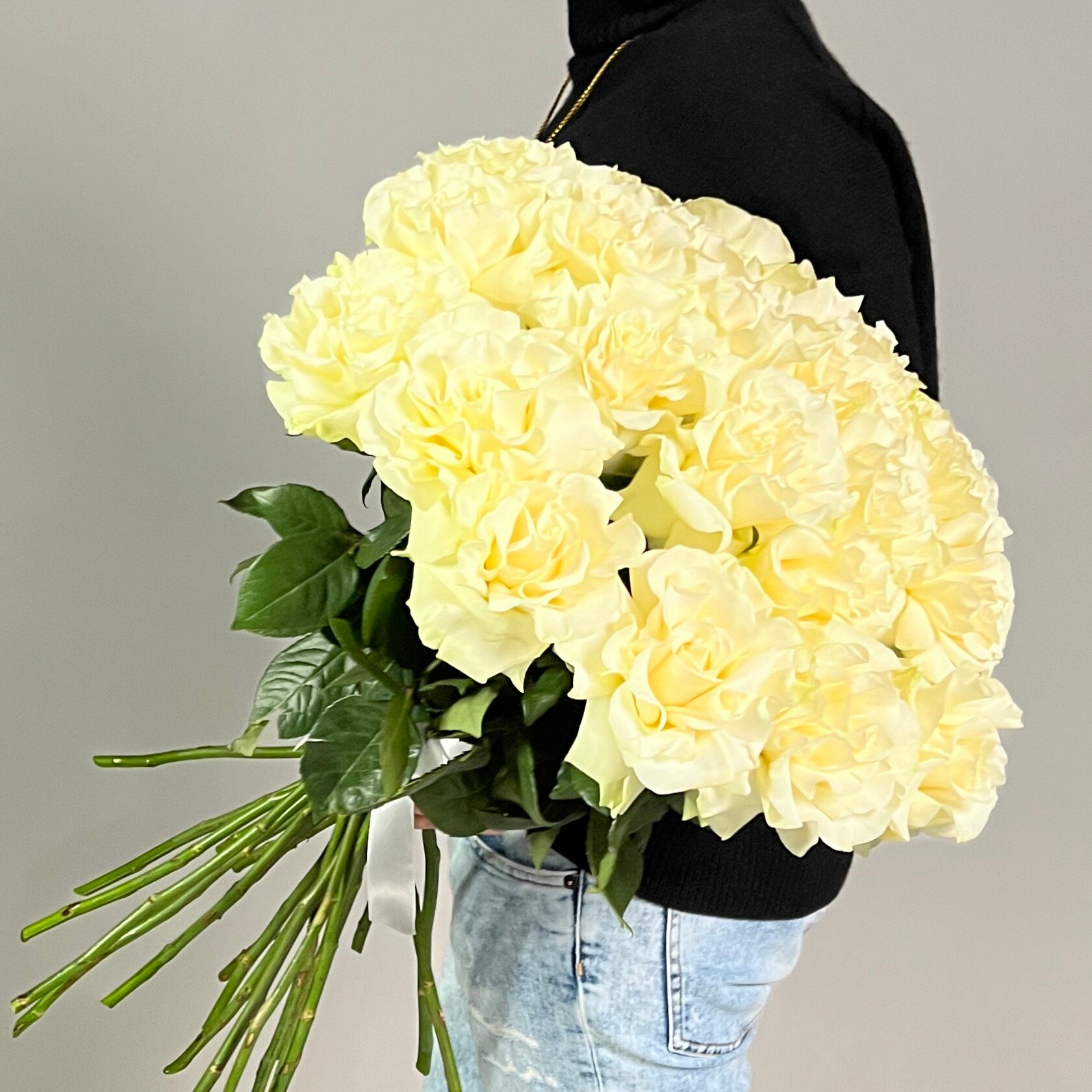 Монобукет живых цветов 25 французских белых роз