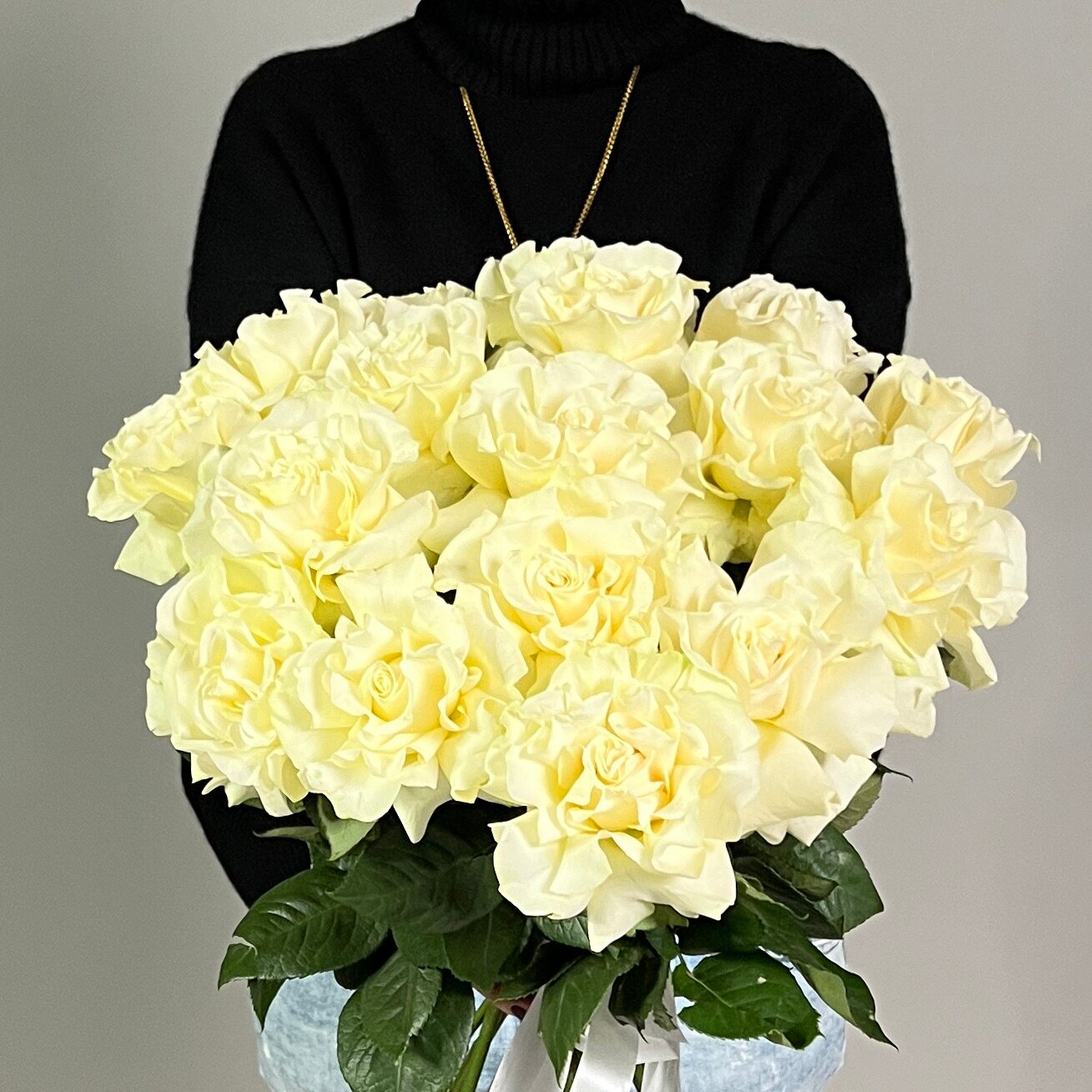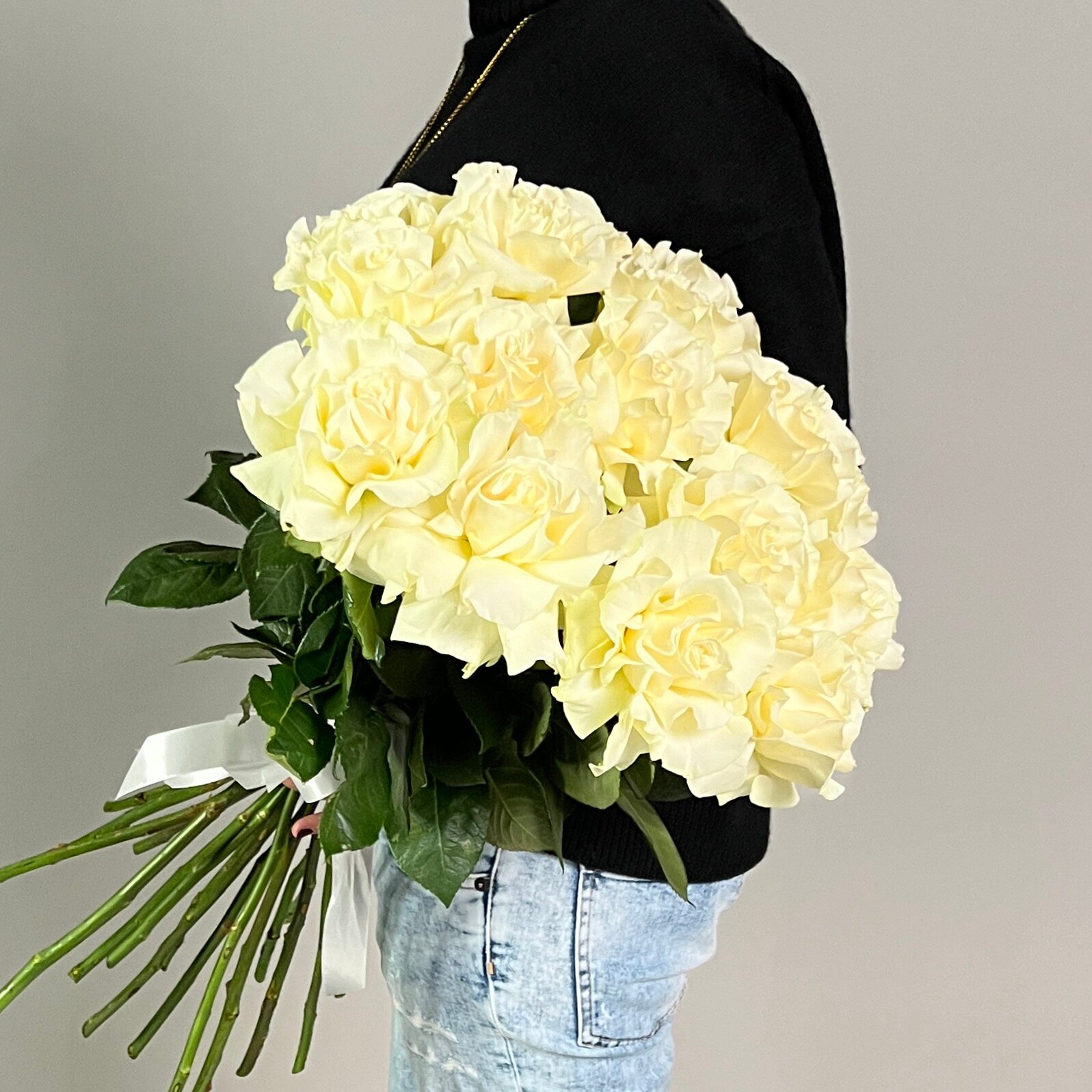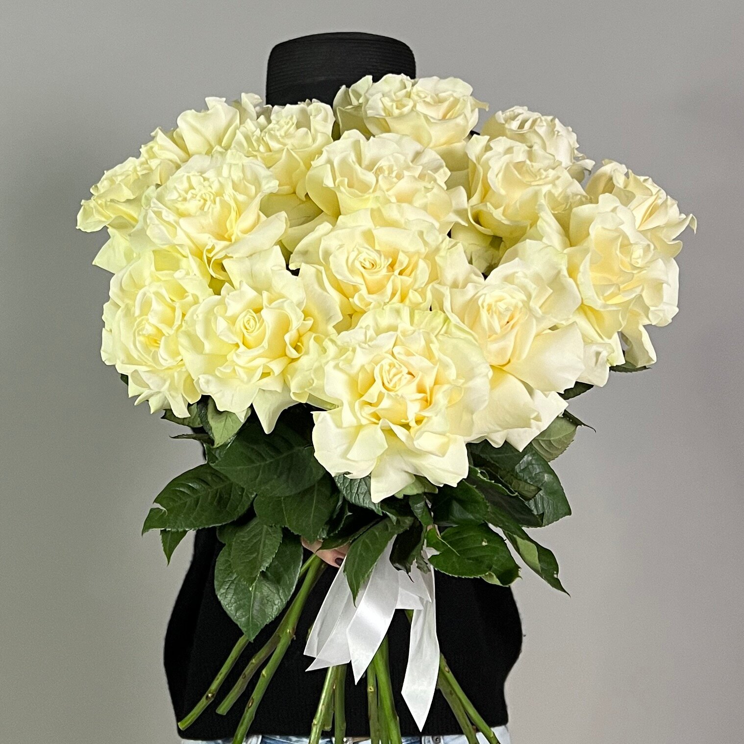 Монобукет живых цветов 25 французских белых роз