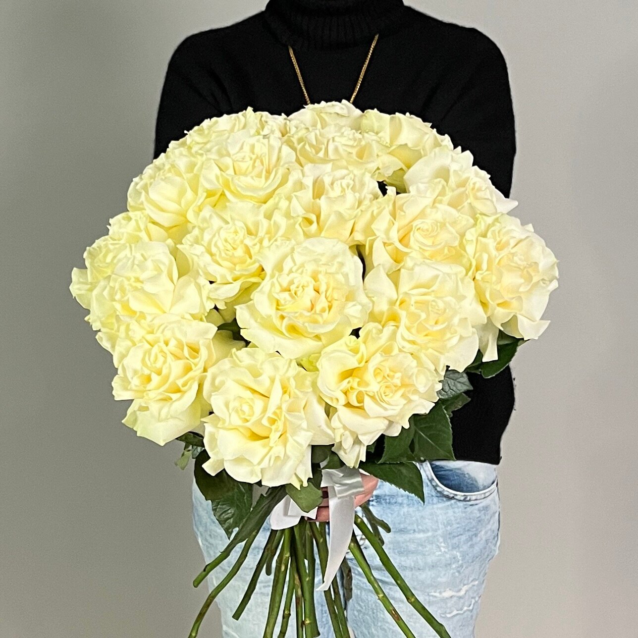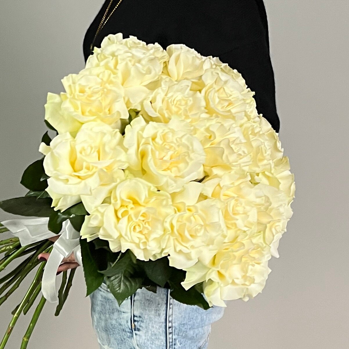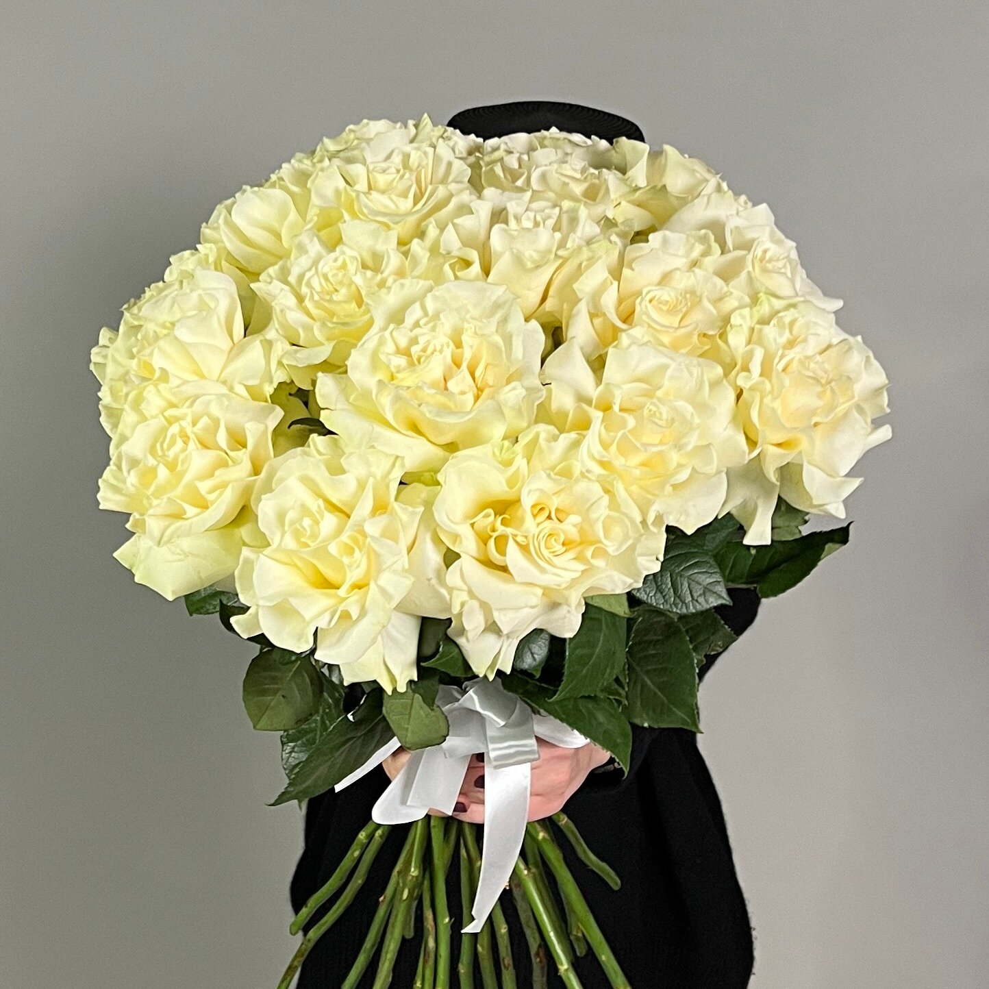 Монобукет живых цветов 25 французских белых роз