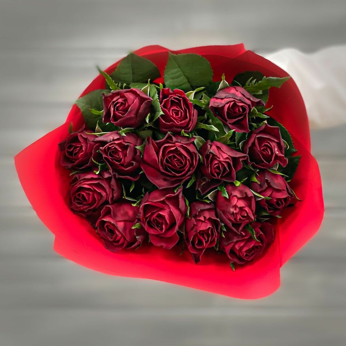Букет из 15 красных роз 40см в упаковке