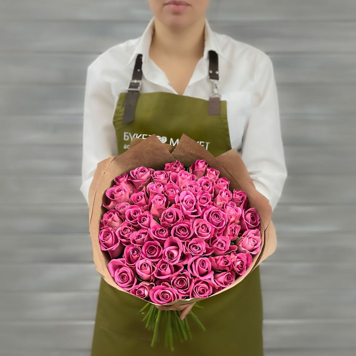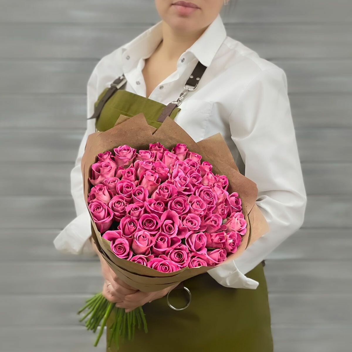 Купить Букет живых цветов из 51 розовой розы 40см в крафте