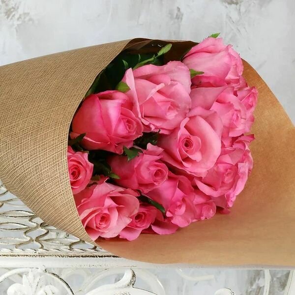 Букет живых цветов из 19 розовых роз 40см в крафте