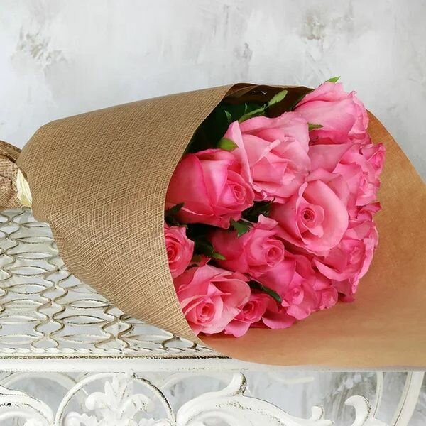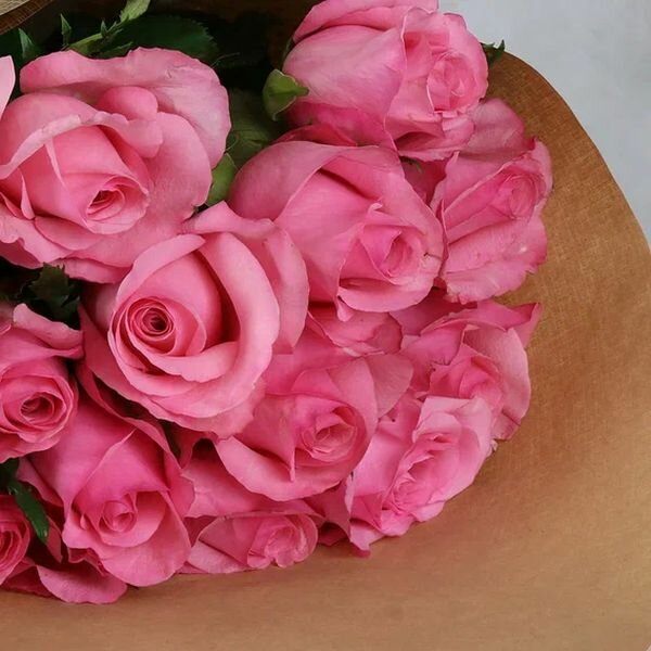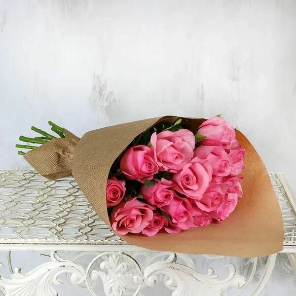 Букет живых цветов из 17 розовых роз 40см в крафте