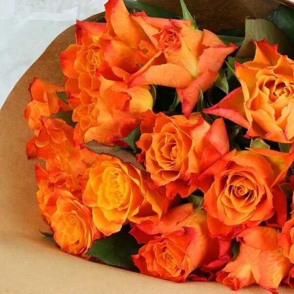 СохранитьБукет живых цветов из 15 оранжевых роз 40см. в крафте интересное: