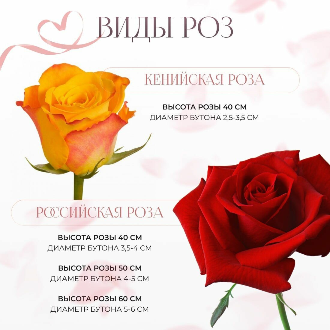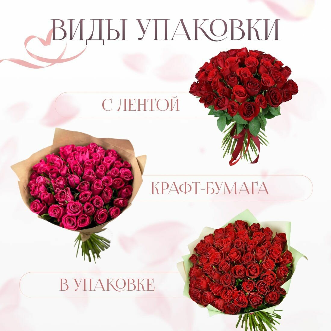 | Состав | Роза кенийская 40 см,Бумага упаковочная Крафт,Лента,Плёнка прозрачная |