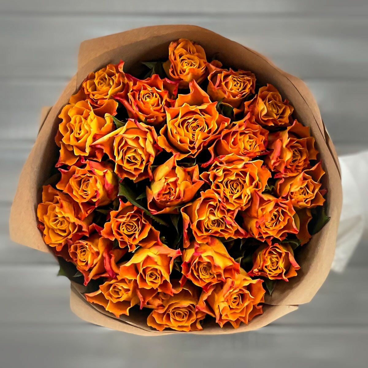 Букет живых цветов из 31 оранжевой розы 40см в крафте