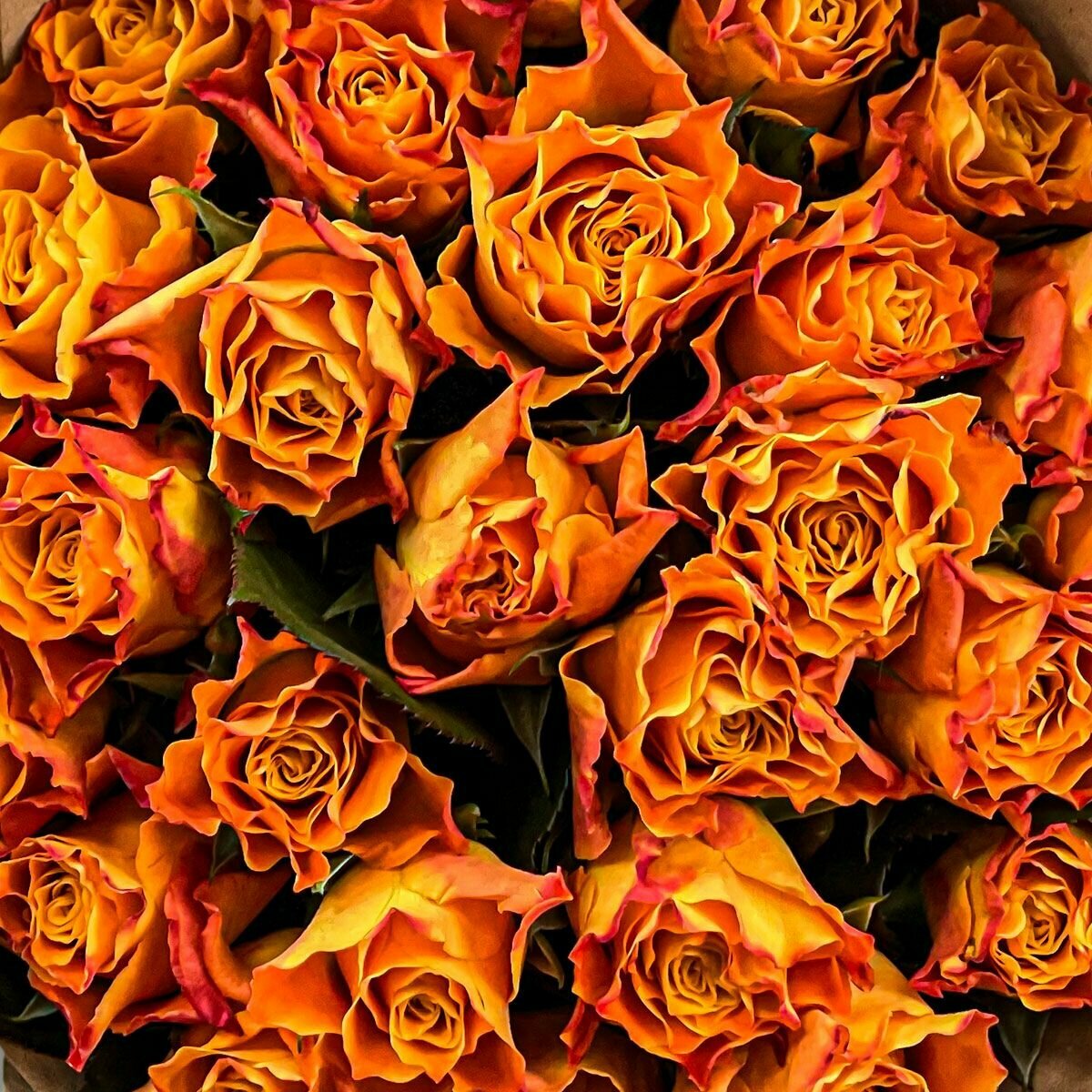 Купить Букет живых цветов из 19 оранжевых роз 40см в крафте