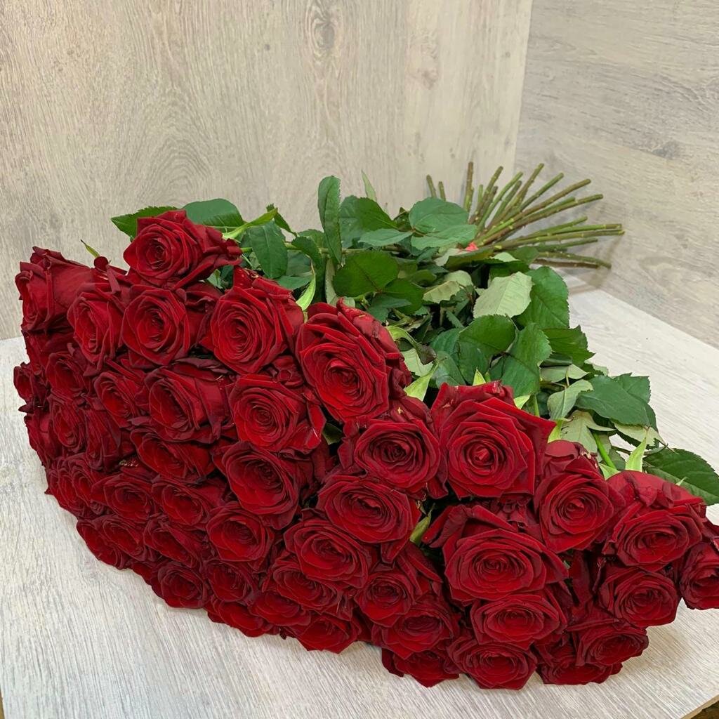 Купить Живые цветы букет красных роз 51 шт 40 см