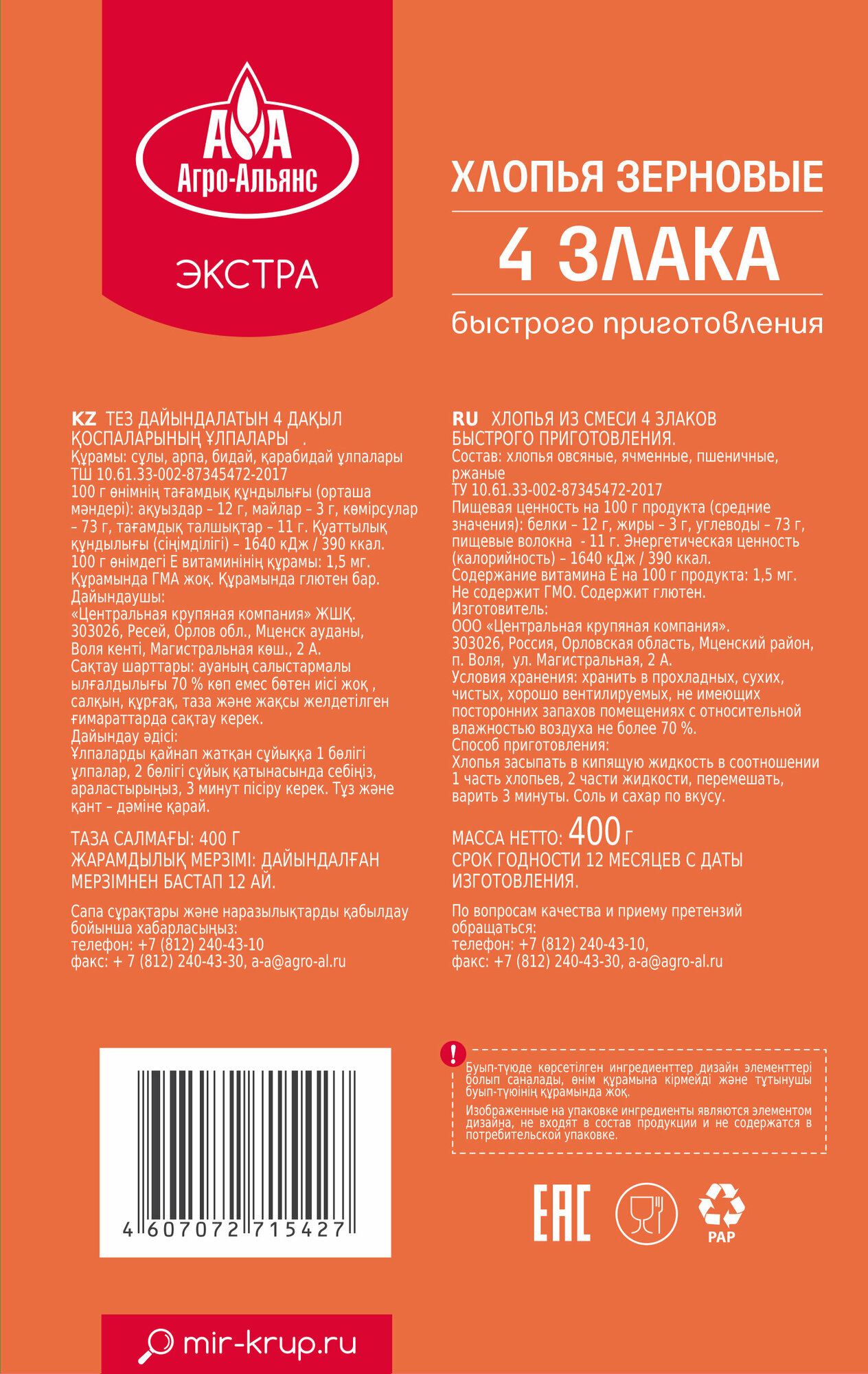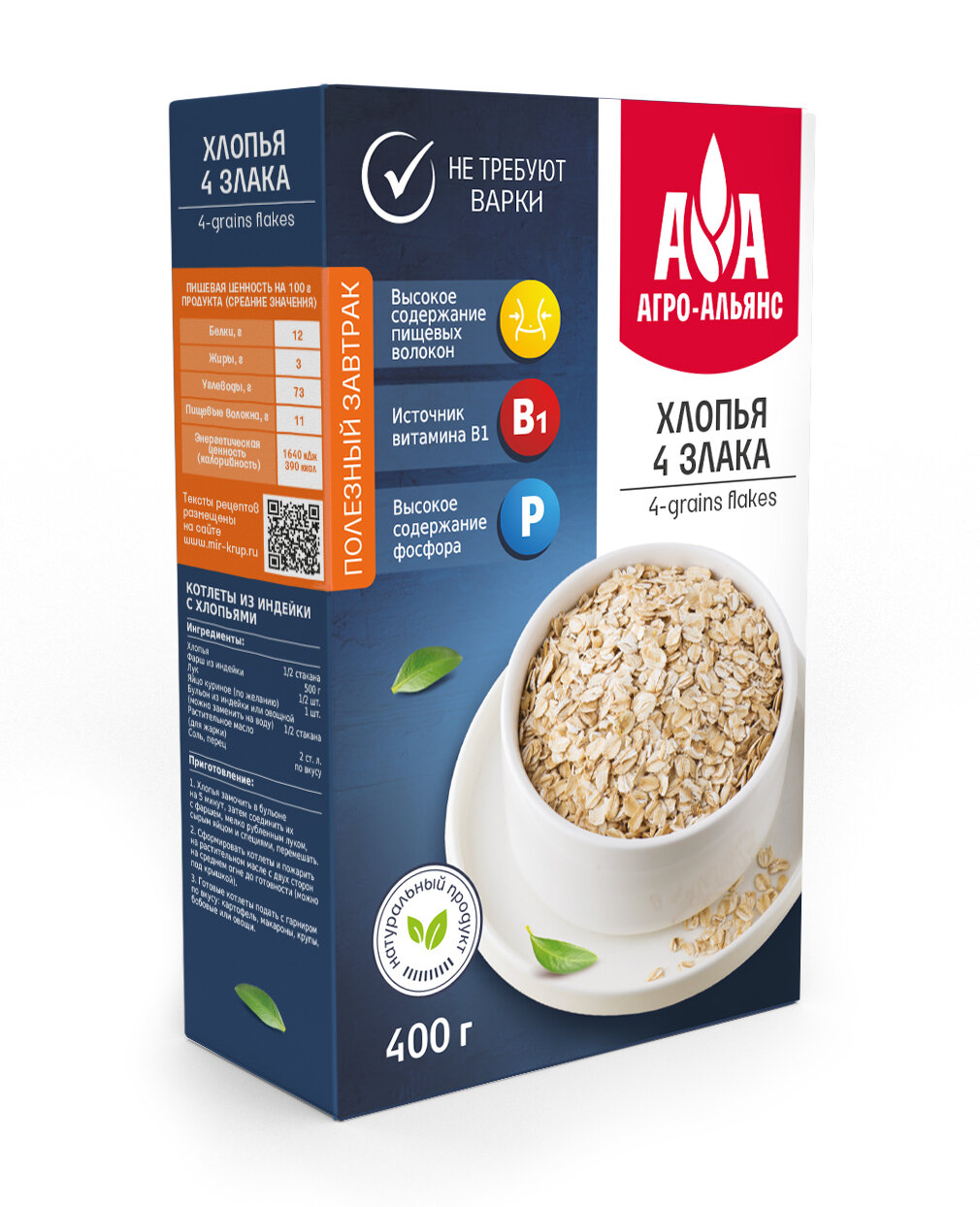 Хлопья 4 злака "Агро-Альянс Экстра", 400г интересное: