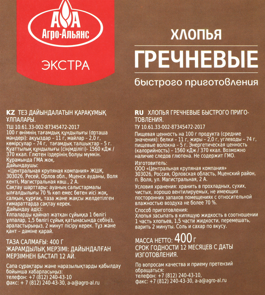 Купить Хлопья гречневые "Агро-Альянс Экстра", 400 г
